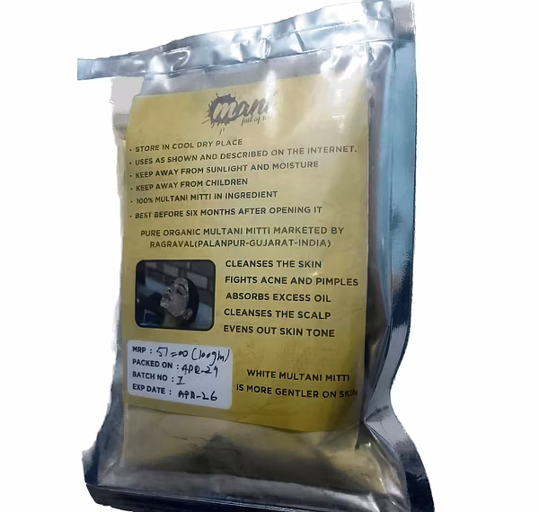 Unleash the power of Mani Multani Mitti Powder, known for its ability to absorb excess oil, purify pores, and rejuvenate your skin. Experience glowing and healthy skin like never before!