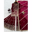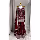 Elevate your ethnic ensemble with our Maroon Georgette Sharara Suit with Dupatta. This stunning piece exudes elegance and style, perfect for special occasions.
