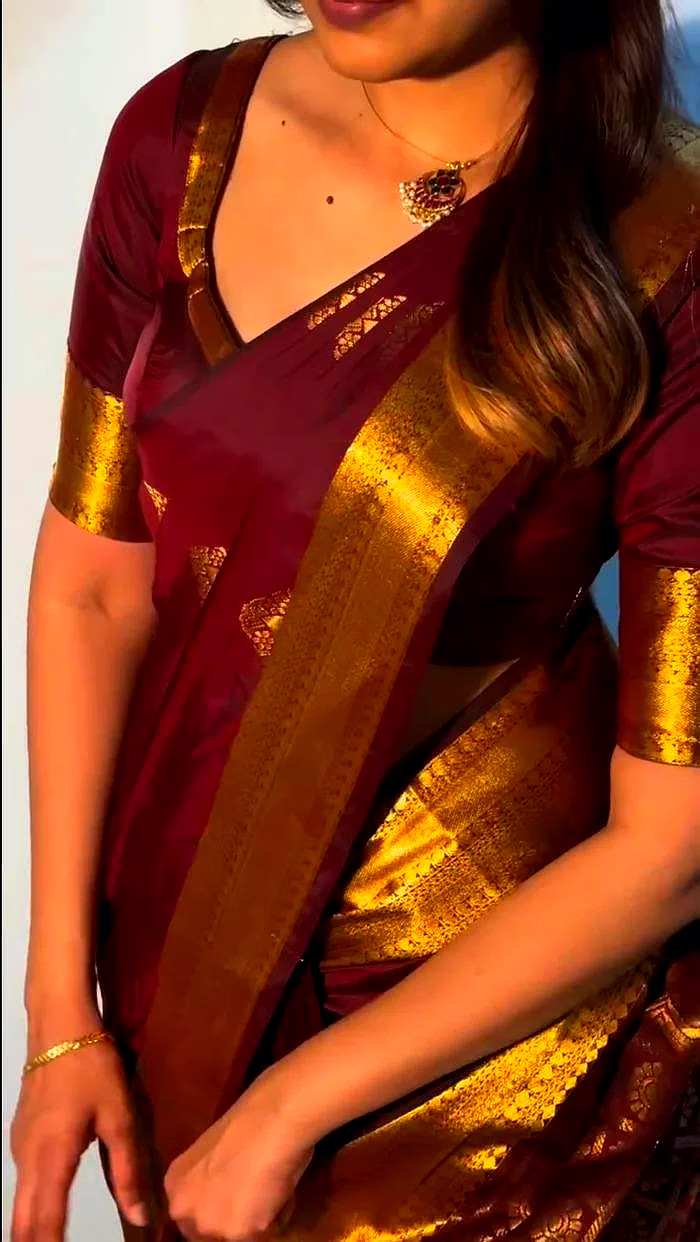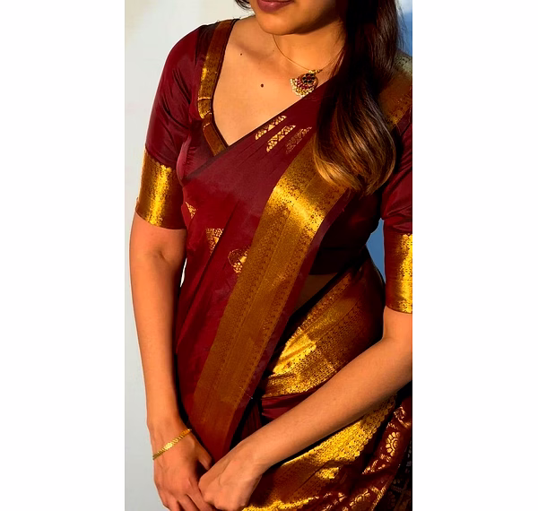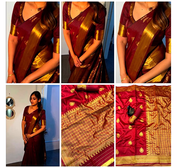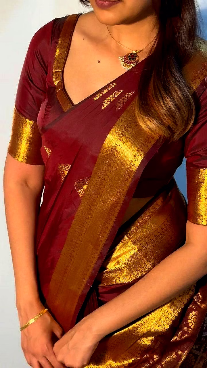 Design Pattern: Classic Kanjivaram-inspired motifs on a rich maroon canvas