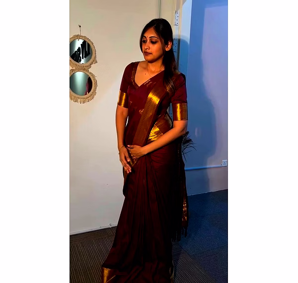 This soft lichi silk saree is specifically engineered for easy draping. Unlike stiff traditional silks, our fabric is supple and lightweight, hugging your silhouette beautifully while allowing for effortless movement from morning rituals to evening celebrations.