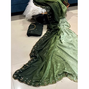 Saree Fabric: Rangoli Silk Fabric with Khatli Cut Dana and Moti Handwork, with Arco Border.
