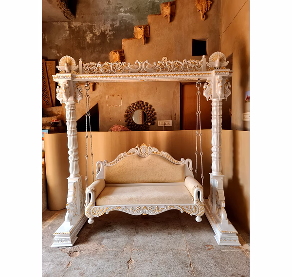Mayur type jhula made in teak wood and all type polish avaliabl on order jhula very heavy and long use.