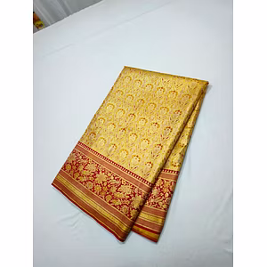 Experience the artistry of traditional Indian craftsmanship with this saree. The meticulous attention to detail and rich textures showcase the heritage of handwoven textiles, adding a touch of regal charm to your ensemble.
