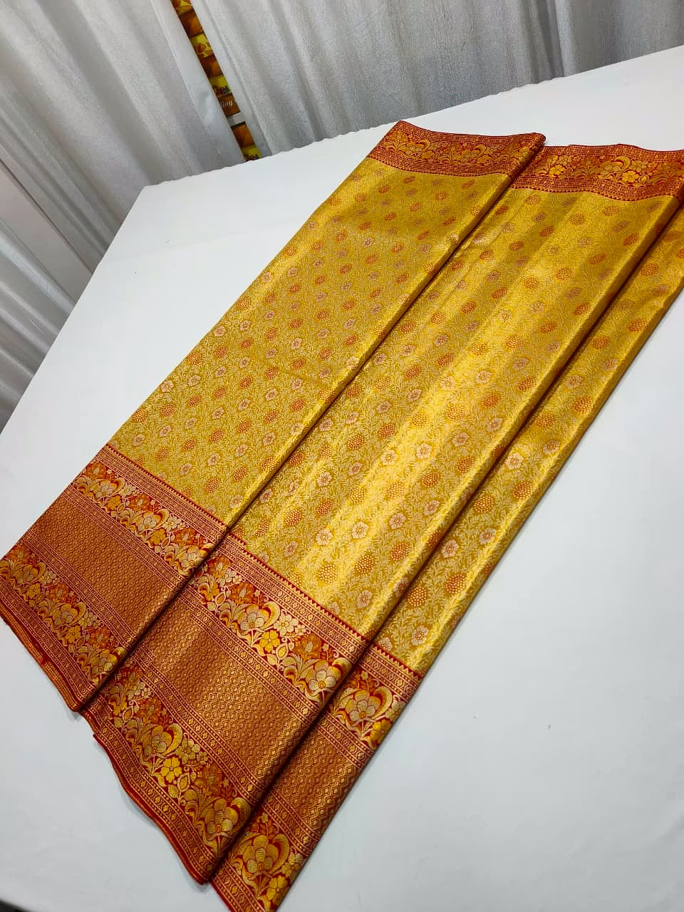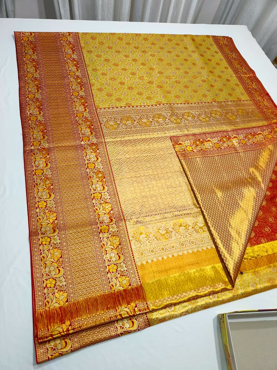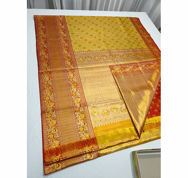 Steal the spotlight with the Meenakari luxury saree. Whether it's a wedding, party, or festive celebration, this saree promises to enhance your beauty and confidence, leaving a lasting impression wherever you go.