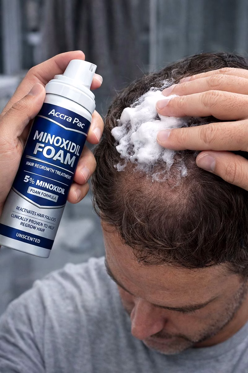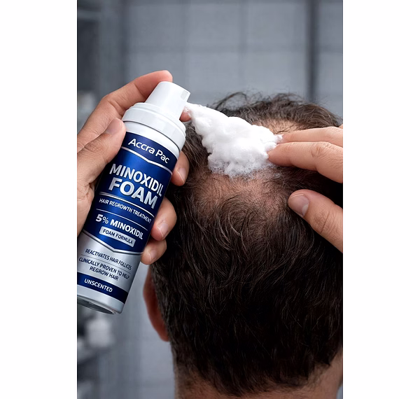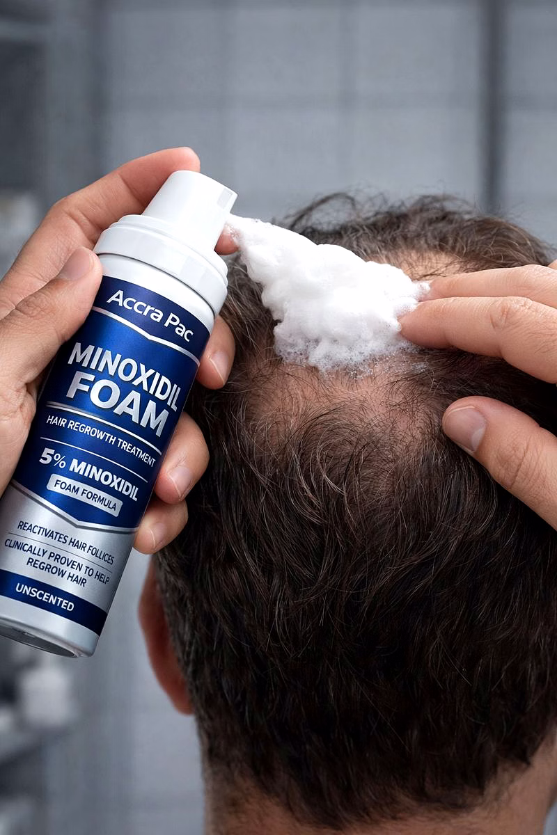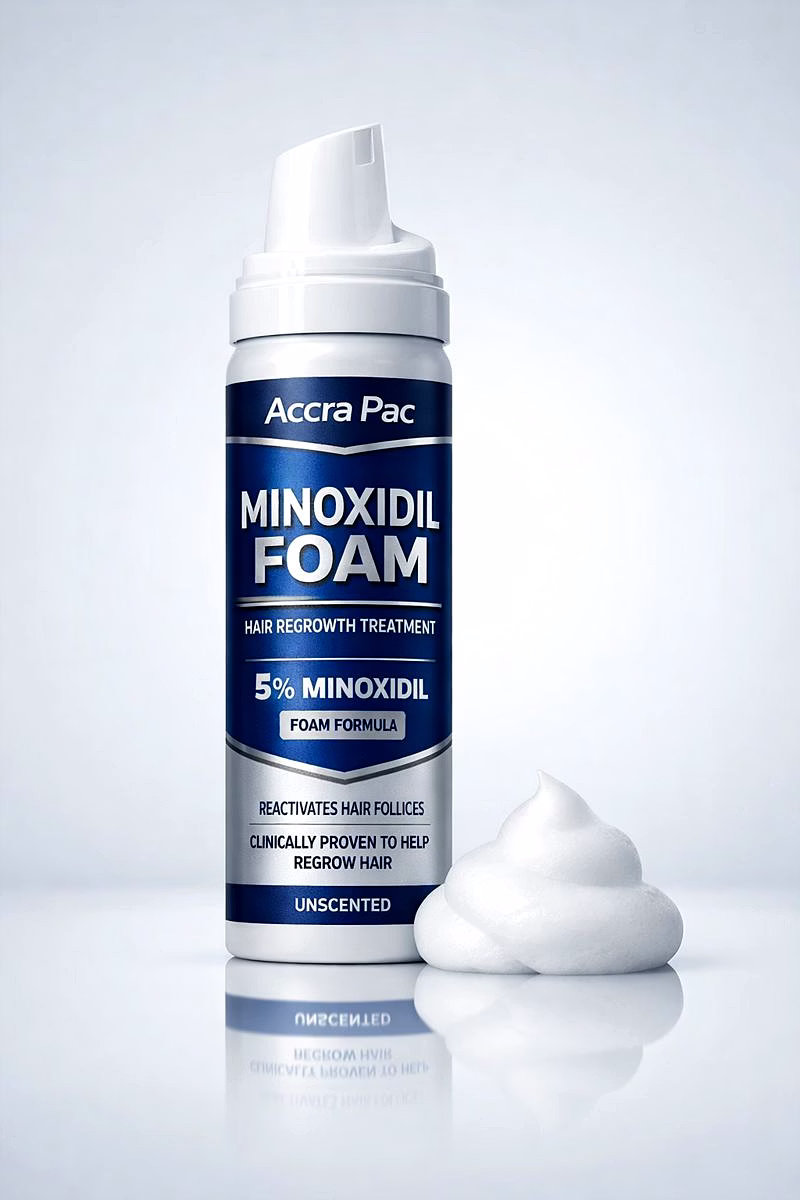 Accra Pac Minoxidil Foam is a professionally formulated topical hair regrowth solution designed for effective, convenient use in clinical, retail, and export markets.