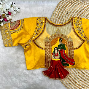 Introducing our exquisite product, a heavy pure soft Italian fabric with tricot and real mirror hand stitch work. Perfectly tailored in a ready size 38, it can be altered to fit up to 42 inches. With its sleeveless design and beautiful Navratri & Partywear design, this piece showcases real kaudi beautiful work. The heavy stitching and padding add a touch of luxury to the garment. Featuring back hooks for easy wear, this product is available in a stunning array of 10 colors. Elevate your style and make a statement at any occasion with this unique and eye-catching piece.