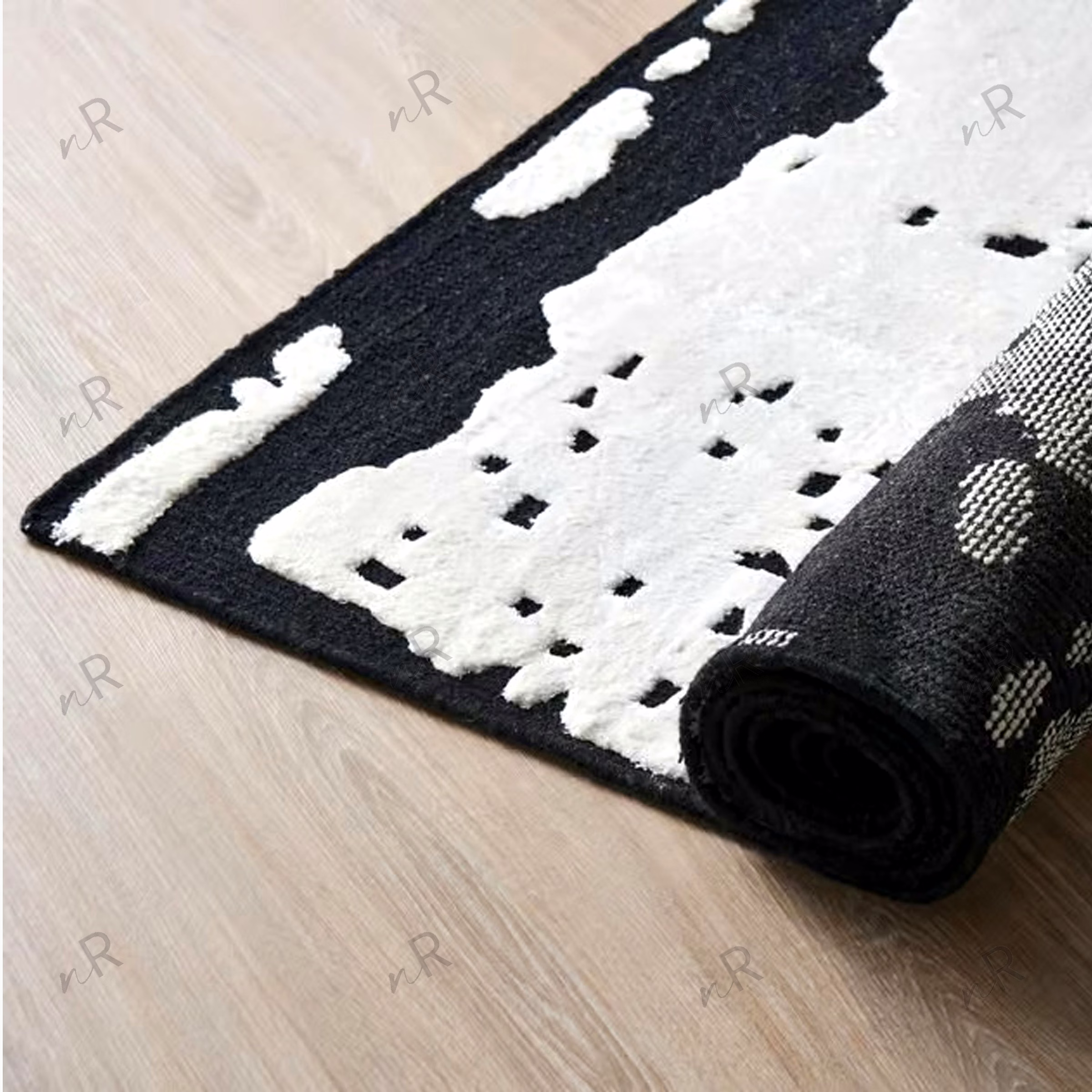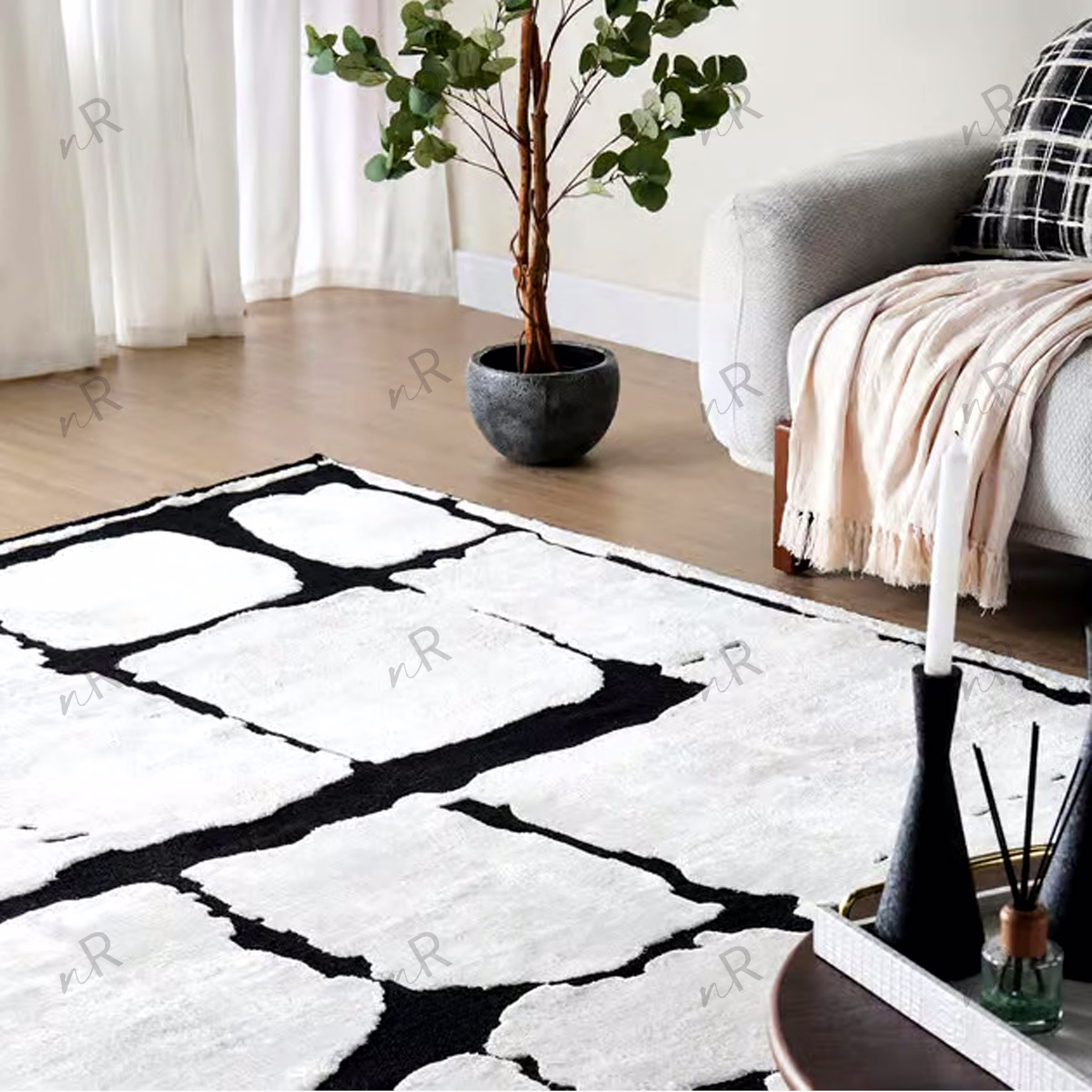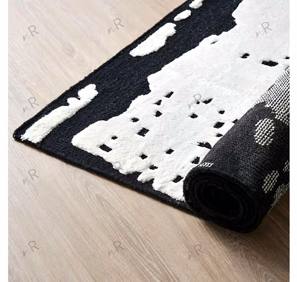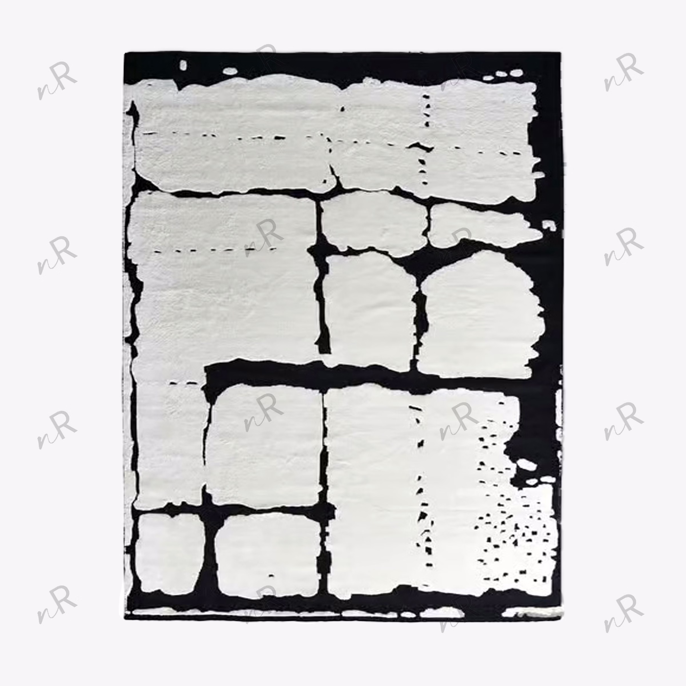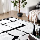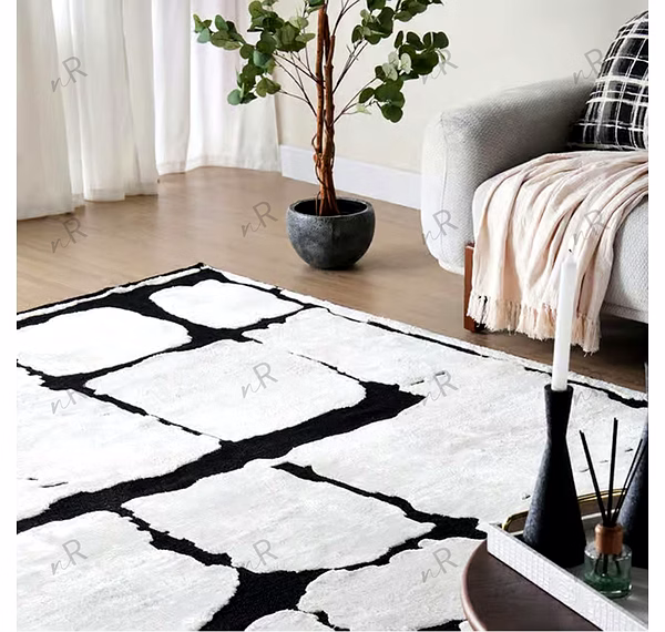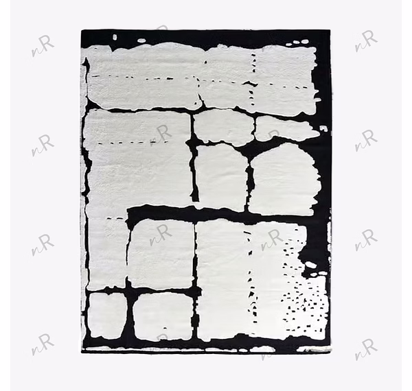 This contemporary rug features a striking black-and-white abstract pattern that creates bold visual impact. The irregular block-like shapes mimic hand-drawn textures, giving the rug an artistic, gallery-inspired appeal. Its monochrome palette makes it versatile for modern interiors, enhancing minimal, industrial, or luxury spaces. The textured surface adds depth, making it both a functional floor covering and a statement art piece. Perfect for living rooms, lounges, offices, or creative spaces, this rug instantly elevates the atmosphere with sophistication and edge.