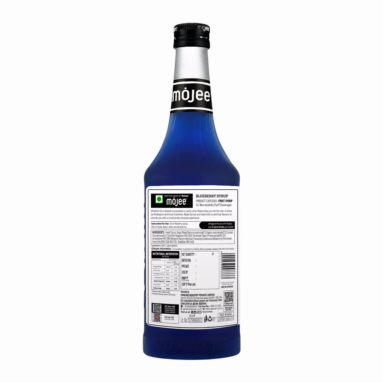 Mojee Blueberry Syrup 1L offers a soft and refreshing berry flavour that fits well in many beverage and dessert recipes. The taste is slightly sweet with a gentle fruity note, making it enjoyable in both simple and creative drinks.