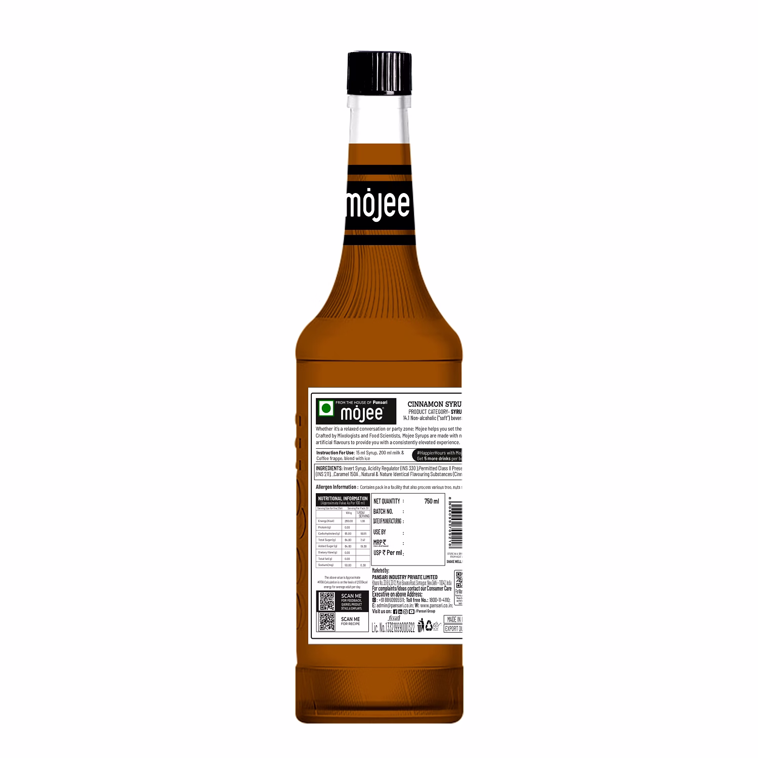 Mojee Cinnamon Syrup 750ml offers a warm and aromatic flavour inspired by natural cinnamon spice. Known for its slightly sweet and comforting taste, cinnamon syrup is widely used to enhance beverages like coffee, tea, and hot chocolate.