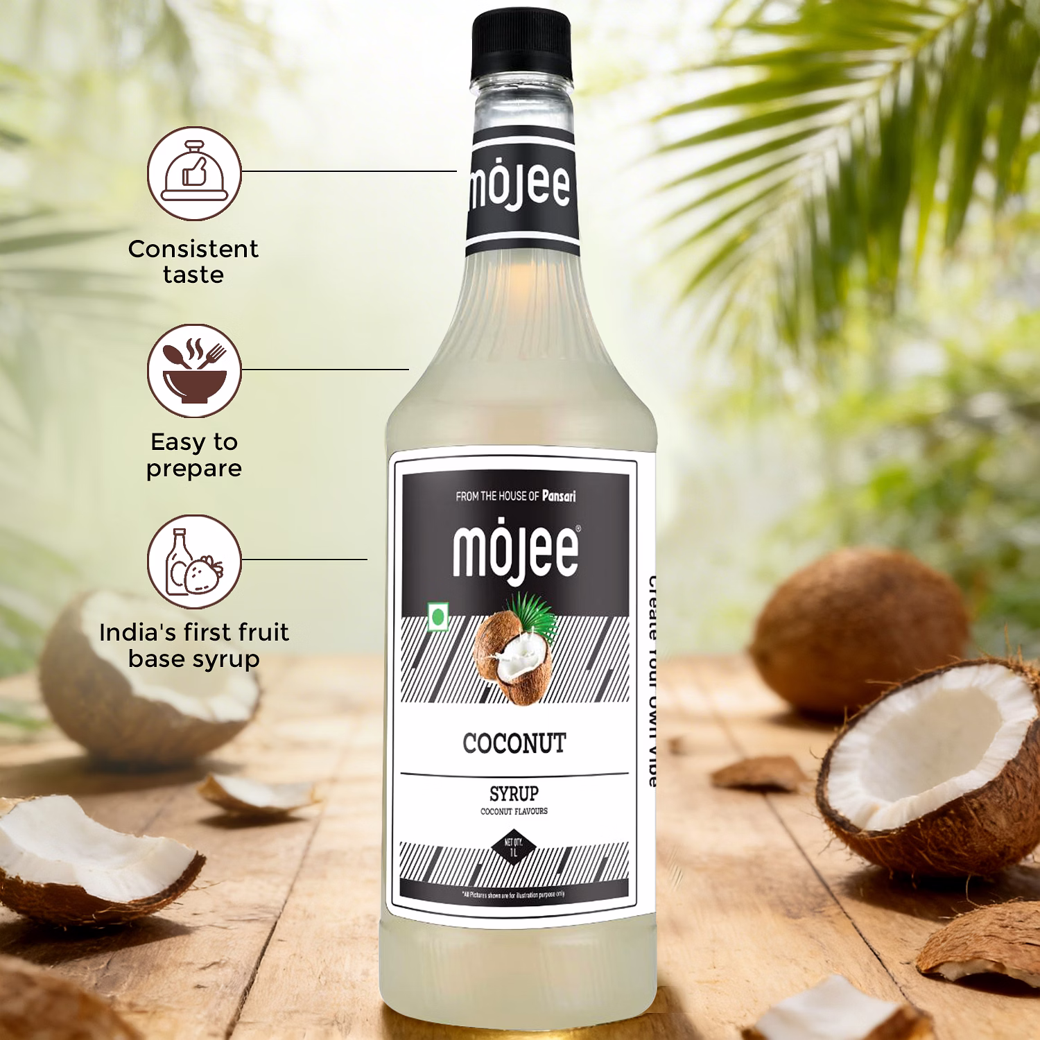 Mojee Coconut Syrup 1L is a coconut flavoured beverage syrup developed for a variety of drink applications. It can be used in mocktails, milk-based drinks, iced beverages, and dessert-style preparations.