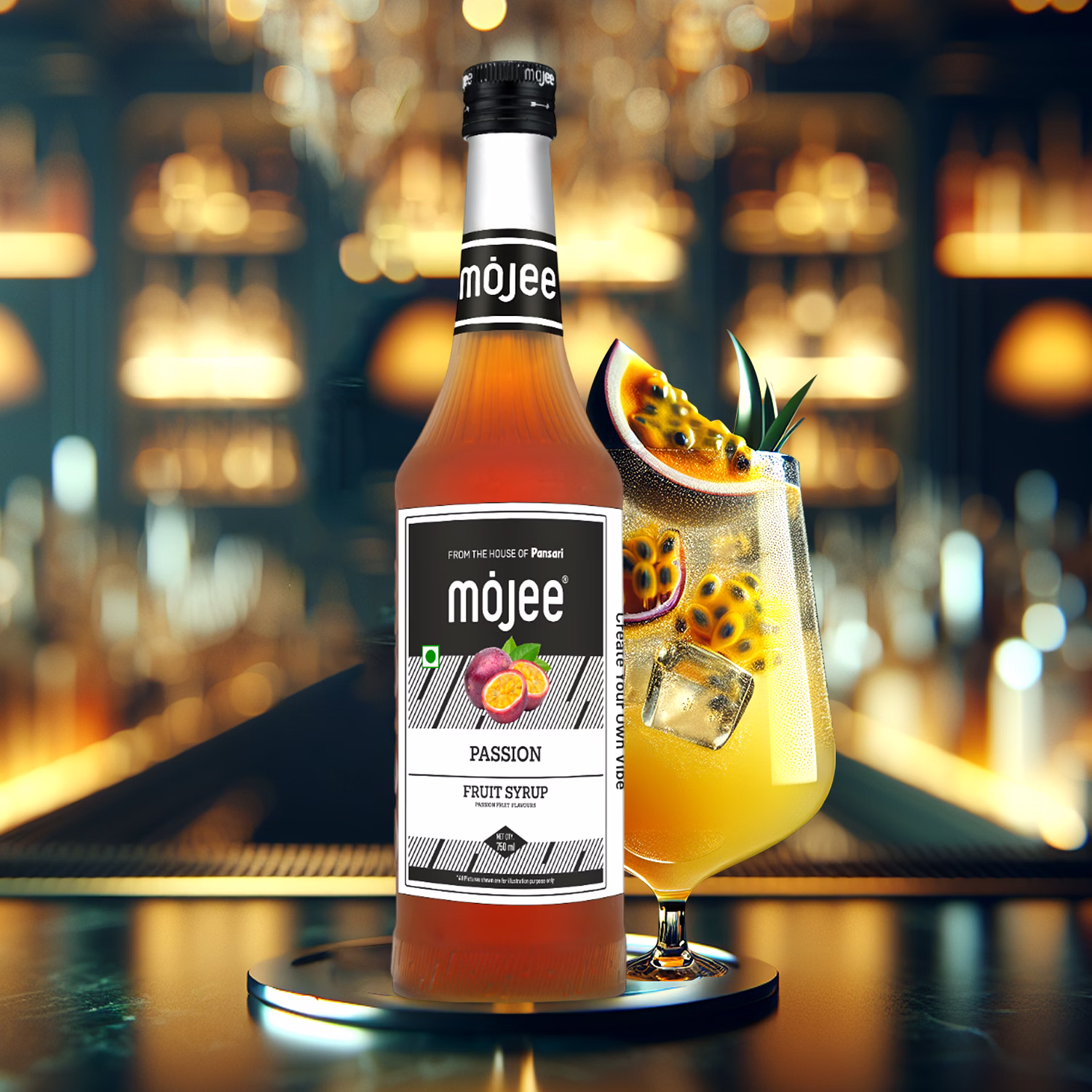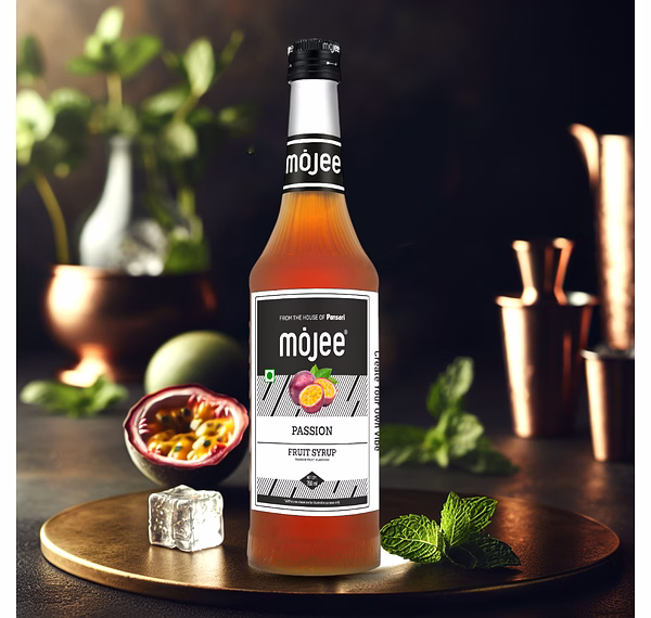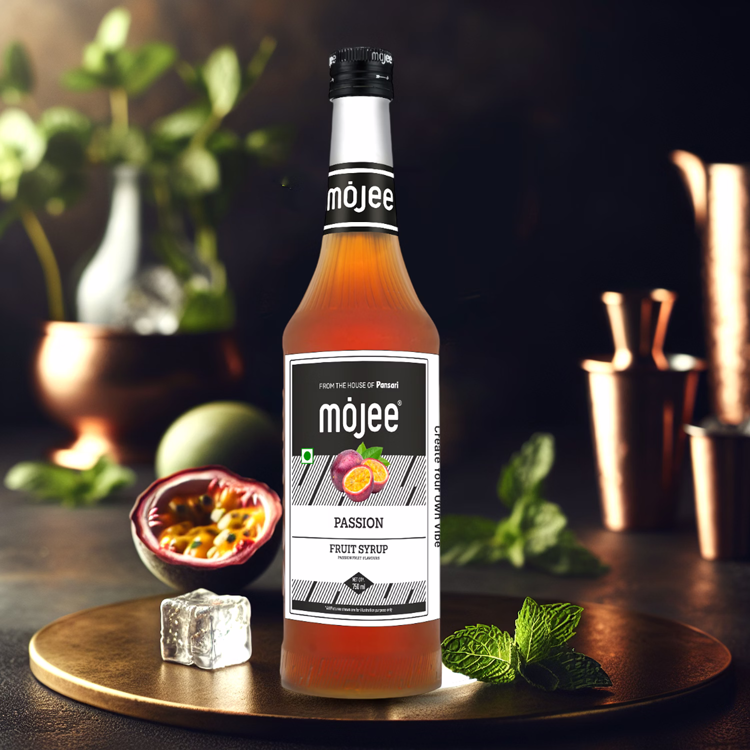 Mojee Passion Fruit Syrup (750ml) is a tropical, tangy syrup made from the natural extract of passion fruit, offering a delightful balance of sweet and sour flavors. Perfect for adding a burst of exotic taste to beverages like cocktails, mocktails, lemonades, iced teas, and smoothies, this syrup brings the vibrant, aromatic flavor of passion fruit to your drinks. With its smooth texture, it mixes effortlessly into both hot and cold beverages, creating a refreshing tropical twist. Mojee Passion Fruit Syrup is also great for drizzling over desserts or fruit salads, enhancing your creations with its unique fruity taste.