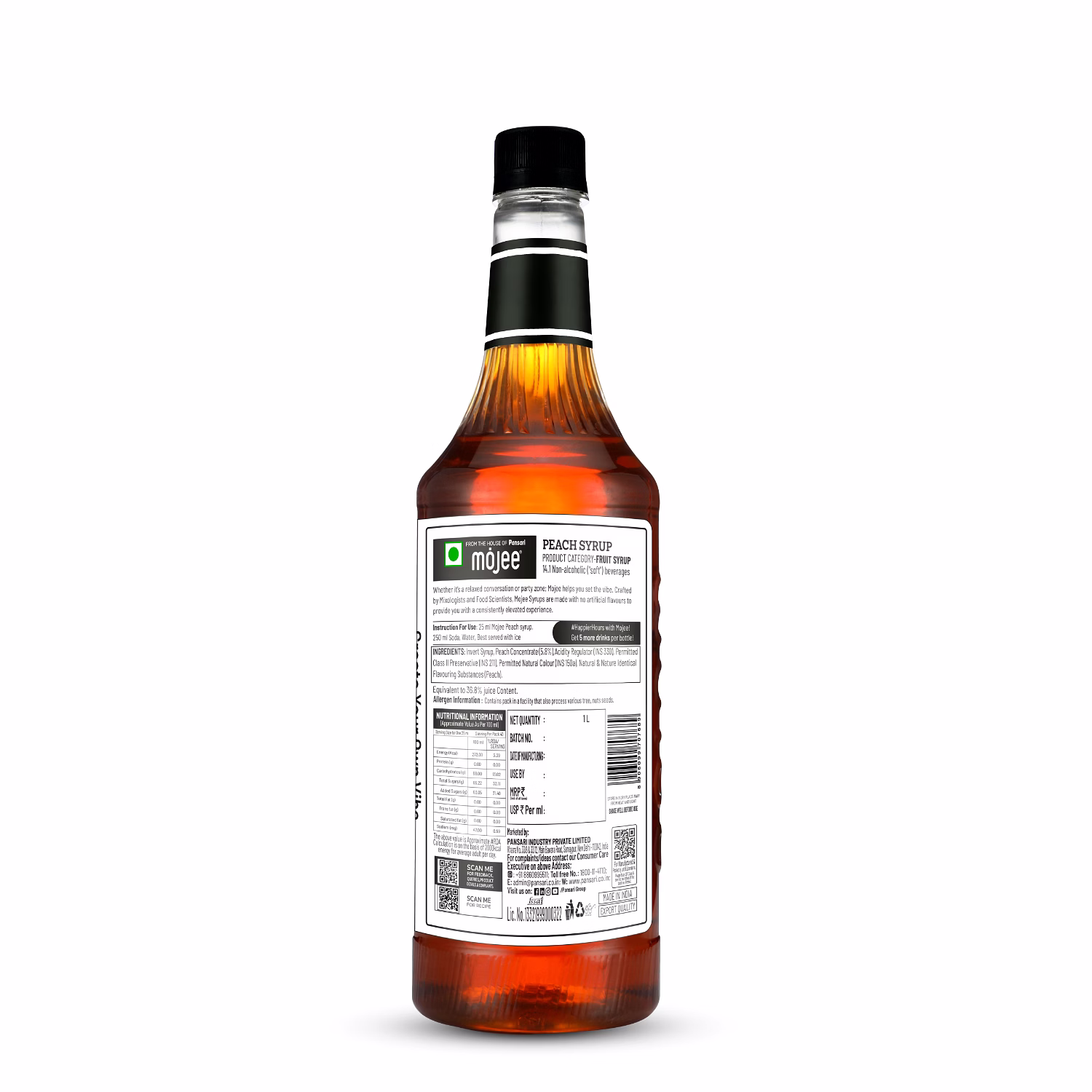 Ideal for importers, wholesalers, and distributors seeking reliable supply of mojee peach syrup - 1ltr from trusted sources.