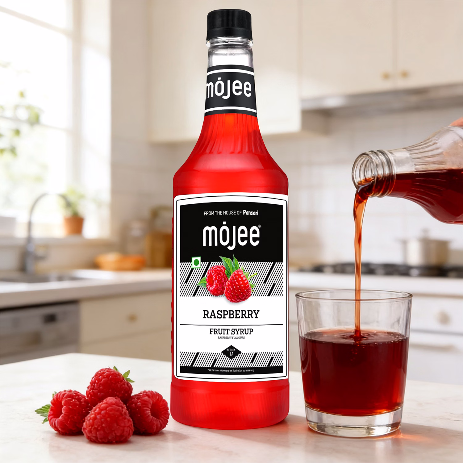 Mojee Raspberry Syrup 1L offers a gentle mix of sweetness and mild tanginess, inspired by the natural taste of raspberries. The flavour is smooth and refreshing, making it a good choice for a variety of beverages and dessert recipes.