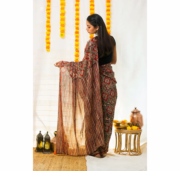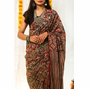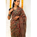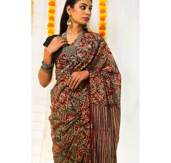 Mul Cotton Block Printed Saree Kalamkari Aztec