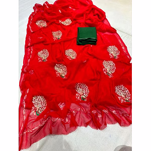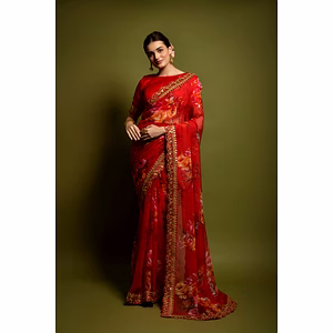 Make a fashion statement with our stylish and elegant Multicoloured Chiffon Saree. The exquisite designer prints add a touch of sophistication to your wardrobe.