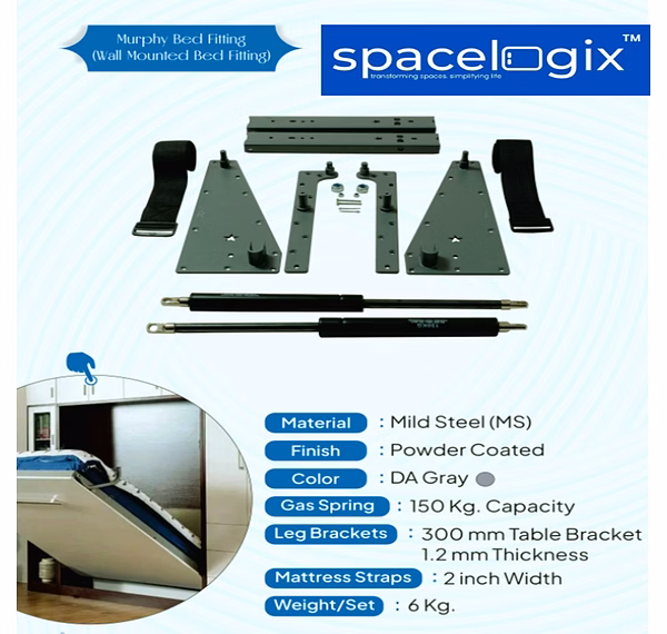 Spacelogix by Weonix World Pvt. Ltd. presents premium-quality Murphy Bed Fittings, engineered for modern compact living. These wall-mounted bed mechanisms transform small spaces into multi-functional rooms, offering style, durability, and ease of use. 100% Made in India, our space-saving hardware ensures smooth folding, robust build quality, and elegant design — perfect for homes, hotels, studios, and offices.
