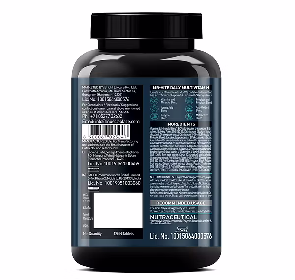 ? Mineral Blend, diluent (Maize Starch & INS 421), vitamin Blend, Thickener (INS 468, INS 462 & INS 464), Stabilizer (INS 1202), Disintegrant (Sodium starch glycolate), Binder (INS 1201), Enzyme Blend, Glazing agent (INS 553 iii), Anti-sticking agent (INS 470 iii) & Anticaking agent (INS 551)