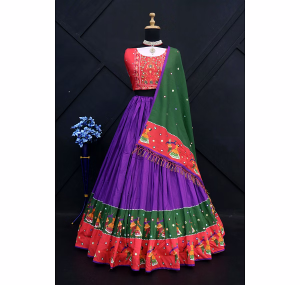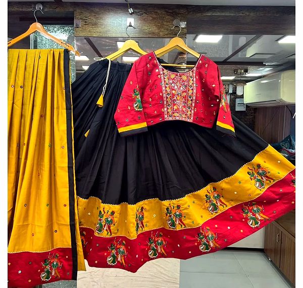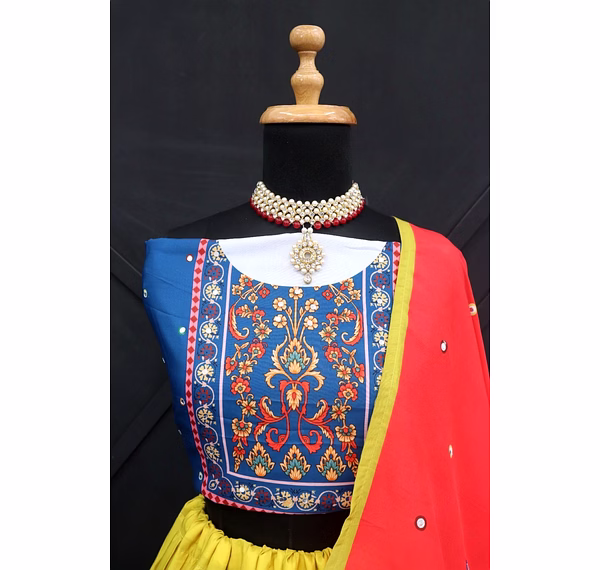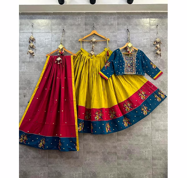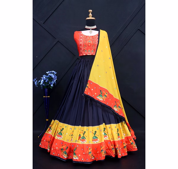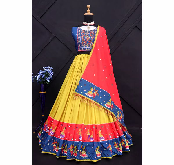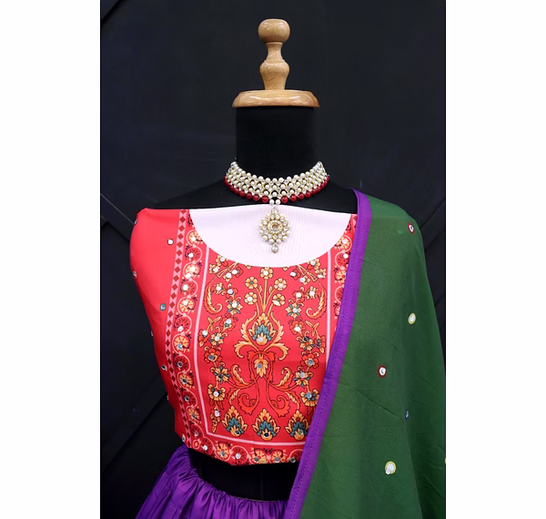 Introducing our stunning semi-stitched Lehenga set, the perfect combination of traditional and modern style. Made from high-quality Muslin Cotton fabric, the Lehenga features intricate printed work that exudes elegance and grace. With a supported waist of up to 42 inches and semi-stitched canvas, the Lehenga ensures a comfortable and personalized fit for every body type. Its length of 42 inches and 4-meter flair with canvas gives it a voluminous and regal look. The set also includes a beautiful Blouse made from Muslin Cotton fabric, with stunning real mirror work that adds a touch of glamour to the overall look. The Unstitched Blouse comes in a size of 1 meter, making it perfect for customization according to individual preferences. To complete the look, our set comes with a Duppatta made from Muslin Cotton fabric, that features real mirror work and a size of 2.10 meters. The Duppatta adds an extra layer of sophistication and style to the outfit. Our Lehenga set is perfect for all occasions, whether it's a wedding or a festival. The semi-stitched Lehenga ensures that it can be easily tailored to fit any body type, making it an ideal choice for all women. The set is not only visually appealing but also comfortable to wear, thanks to its high-quality silk inner lining. Overall, our Lehenga set is a must-have for anyone looking to add a touch of elegance and grace to their wardrobe. With its stunning features, including the real mirror work and high-quality fabric, this set is sure to turn heads and make you the center of attention at any event. Order now and experience the beauty and charm of our Lehenga set for yourself!