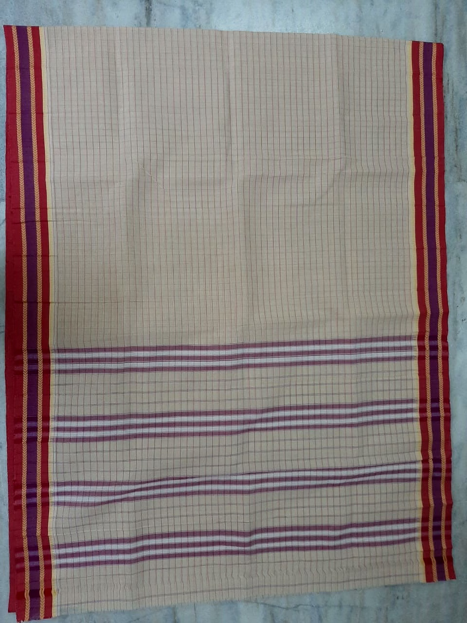 cream grey body with red and voilet border