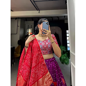Introducing our Navratri Special Lehenga Choli - the perfect blend of tradition and contemporary style! Crafted using premium quality Reyon fabric, this lehenga choli is designed to add a touch of elegance to your festive wardrobe. The intricate foil print adds a unique charm, making it a must-have for the upcoming Navratri season. The Navratri Special Lehenga Choli is fully stitched, making it easy to wear and comfortable for long hours of dancing and celebration. The choli features a stylish cut and design that accentuates your curves, while the lehenga comes with a flared silhouette that adds a graceful sway to your movements. This ensemble is perfect for anyone looking for a comfortable and chic outfit that is sure to turn heads. What sets our Navratri Special Lehenga Choli apart is its versatility. It can be dressed up or down, depending on the occasion. Pair it with stylish accessories and high heels for a glamorous look, or keep it simple with minimal jewelry and flats for a more understated yet elegant vibe. Don't miss out on the opportunity to own this stunning Navratri Special Lehenga Choli. It is a perfect addition to your festive wardrobe and is sure to make you stand out in the crowd. So, grab yours today and get ready to make a statement this Navratri season!