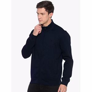 Beat the chills with this navy blue round neck sweatshirt from Black Buck for a perfect look. Layer this piece over a tee and wear jeans and sneakers for a casual dinner look