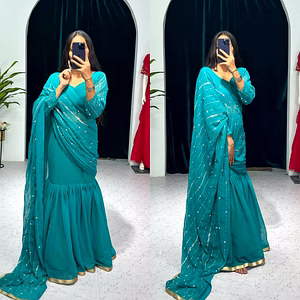 You can find silk, cotton, chiffon, net, crepe and georgette embroidery sarees . The beautiful embroidery makes an embroidered saree different from other sarees. In the earlier days, only thread work was done on embroidery sarees. With the advancement in technology, zari, kundan, pearls and colourful threads are also used. Designers mix colours with threads and stones to create a stunning embroidered saree that will enhance the beauty of an Indian woman.