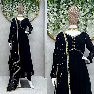 Introducing our gorgeous new designer heavy fuax georgette green Pakistani suit, the perfect addition to your ethnic wear collection! This suit boasts a unique blend of elegance and style, with its heavy fuax georgette fabric and intricate diamond hand work on the top. The top is available in fully stitched sizes ranging from S to XXL, with a length of 49 inches to ensure a comfortable fit for all body types. The micro cotton inner adds to the comfort factor, making it perfect for extended wear. The heavy Chinese sequins work with heavy stone hand work on the top adds a touch of glamour, making it perfect for formal events or special occasions. The plazzo, crafted from fuax georgette fabric, is fully stitched in a free size and has a length of 39 inches. The chine sequins work on the plazzo adds to its elegance and makes it a perfect match for the top. The dupatta, also made from fuax georgette fabric, is intricately designed with full chine sequins work on all four sides, including the border. The dupatta has a size of 2.10-2.20 mtr, making it versatile enough to be draped in different styles. This suit is the perfect combination of comfort, elegance and style, weighing in at 850gm. Order now and make a statement at your next special event with our stunning new designer heavy fuax georgette green Pakistani suit!