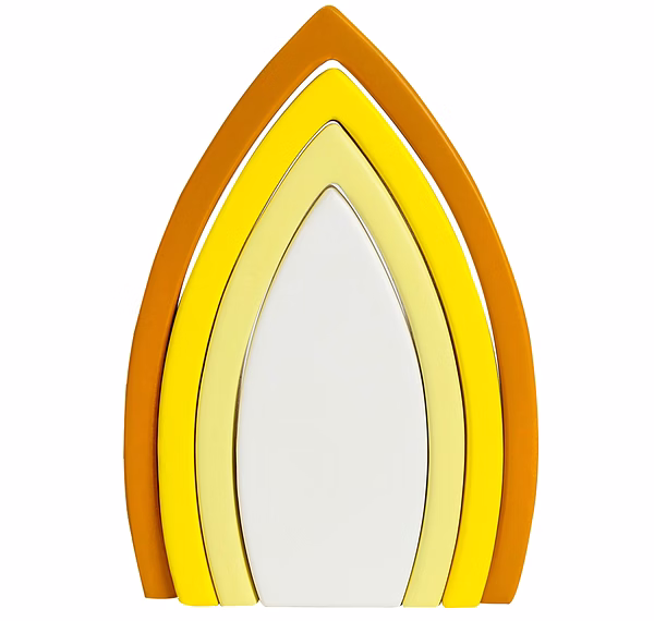 Inspired by Waldorf learning encouraging open ended play, allowing children to express themselves in play freely and creatively, not bound by preset limitations. This colored flame shaped arch wood stacker is great for both - toddlers, who are learning how to stack and nest objects, and older children who love to play with blocks There are various ways of playing... You can learn colours, count the blocks, use the stacker as a pyramid and as a balance toy. Make art-objects and let the little ones get creative! The stacker can be a bridge, a tunnel for little cars, a bed, a seesaw or dolls furniture! The possibilities are endless! Handmade with love by Numobel in INDIA. The Numobel-Toys-Stacker-Flame is a toys product developed for buyers sourcing reliable wooden educational toy for retail, school, and distributor requirements.