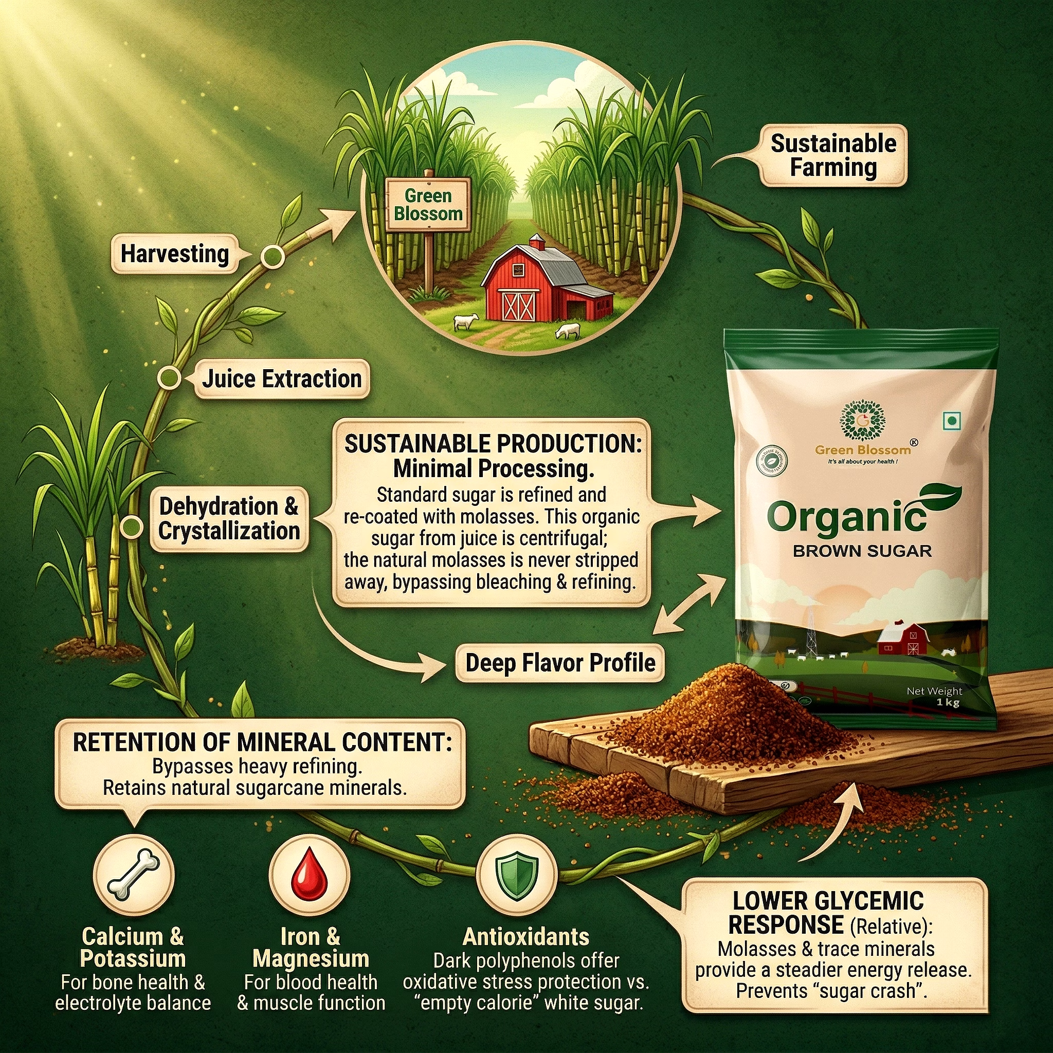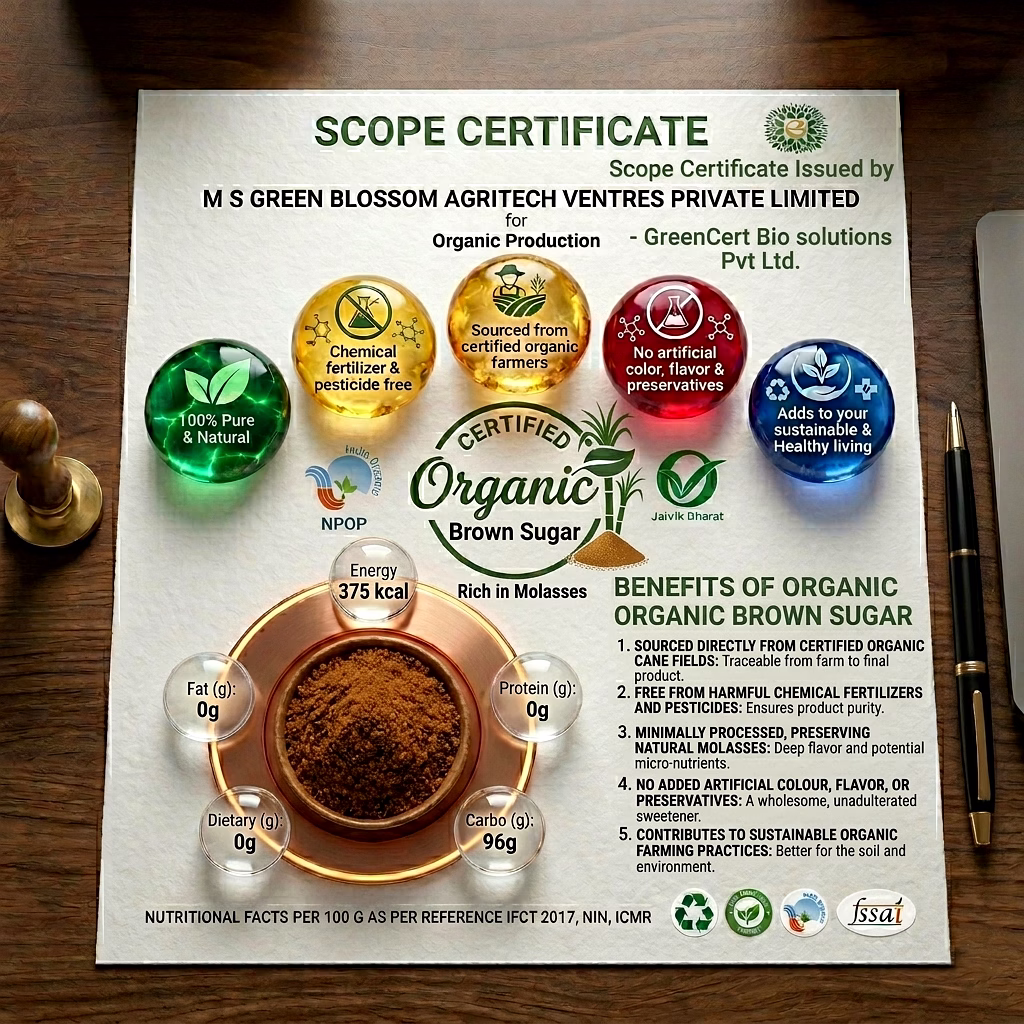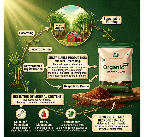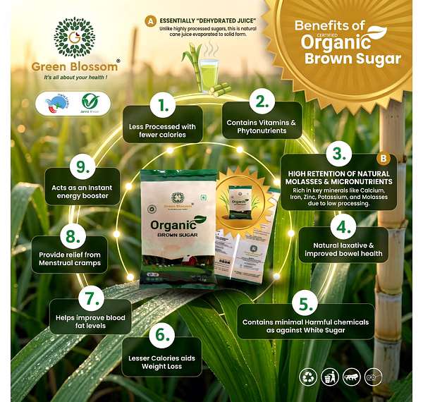 Organic Brown Sugar - 1 Kg (Pack of 1) I Green Blossom is a reliable choice for buyers looking for consistent quality and standardized specifications. It is ideal for bulk buyers and international clients across the sugar & jaggery segment.