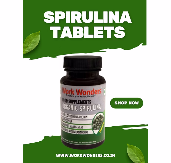 Elevate your health and wellness with Work Wonders Organic Spirulina Tablets – a convenient, nutrient-rich superfood supplement designed to support your active lifestyle and overall well-being.