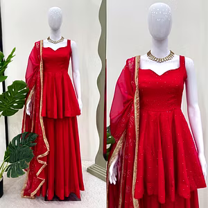 Introducing our stunning Organza Embroidered Kurta Set with Lace Dupatta. This exquisite ensemble is designed to make you look and feel like a true fashion icon. Crafted with the finest quality organza fabric, this kurta set is a masterpiece of elegance and style. The intricate embroidery work adds a touch of glamour to the outfit, making it perfect for special occasions or festive celebrations. The delicate lace dupatta complements the kurta beautifully, adding an ethereal charm to your look. One of the key features of this kurta set is its versatility. Whether you're attending a wedding, a party, or a formal event, this ensemble is sure to make heads turn. You can easily dress it up with statement jewelry and high heels for a glamorous look, or pair it with minimal accessories for a more understated elegance. But it's not just about the looks. This kurta set is designed with your comfort in mind. The lightweight organza fabric feels soft against your skin, allowing you to move and dance with ease. The breathable fabric ensures that you stay cool and comfortable even during long hours of wear. What sets this kurta set apart from the rest is its unique combination of traditional craftsmanship and contemporary design. The intricate embroidery patterns and the modern silhouette create a perfect fusion of timeless elegance and modern sophistication. In summary, our Organza Embroidered Kurta Set with Lace Dupatta is a must-have addition to your wardrobe. With its stunning design, comfortable fit, and versatile styling options, it's a true fashion statement that will make you stand out from the crowd. Embrace your inner fashionista and indulge in the luxury of this exquisite ensemble.