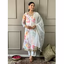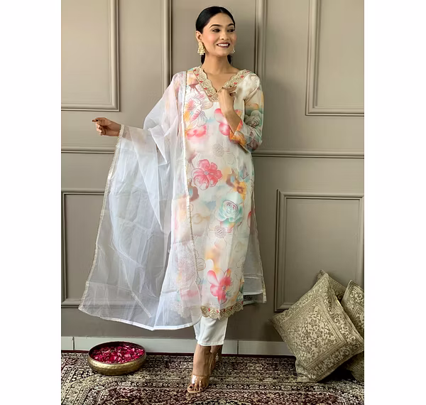 Introducing our stunning Organza Embroidered Kurta Set with Lace Dupatta. This exquisite ensemble is designed to make you look and feel like a true fashion icon. Crafted with the finest quality organza fabric, this kurta set is a masterpiece of elegance and style. The intricate embroidery work adds a touch of glamour to the outfit, making it perfect for special occasions or festive celebrations. The delicate lace dupatta complements the kurta beautifully, adding an ethereal charm to your look. One of the key features of this kurta set is its versatility. Whether you're attending a wedding, a party, or a formal event, this ensemble is sure to make heads turn. You can easily dress it up with statement jewelry and high heels for a glamorous look, or pair it with minimal accessories for a more understated elegance. But it's not just about the looks. This kurta set is designed with your comfort in mind. The lightweight organza fabric feels soft against your skin, allowing you to move and dance with ease. The breathable fabric ensures that you stay cool and comfortable even during long hours of wear. What sets this kurta set apart from the rest is its unique combination of traditional craftsmanship and contemporary design. The intricate embroidery patterns and the modern silhouette create a perfect fusion of timeless elegance and modern sophistication. In summary, our Organza Embroidered Kurta Set with Lace Dupatta is a must-have addition to your wardrobe. With its stunning design, comfortable fit, and versatile styling options, it's a true fashion statement that will make you stand out from the crowd. Embrace your inner fashionista and indulge in the luxury of this exquisite ensemble.