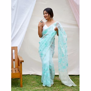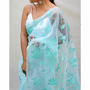 Introducing our stunning Organza Flower Embroidered Saree with Lace Border – the perfect addition to your closet for weddings, parties, and special occasions. This saree is a masterpiece of intricate embroidery and delicate detailing. The organza fabric is lightweight, yet sturdy, making it easy to drape and comfortable to wear. The flower embroidery is a work of art, with each petal and leaf crafted to perfection. The lace border adds a touch of elegance and sophistication to this already exquisite saree. The contrasting colors of the embroidery and lace create a beautiful harmony, making this saree a true visual treat. But this saree isn't just beautiful – it's also practical. The fabric is easy to care for and can be hand-washed at home. Plus, the saree comes with a matching blouse piece, so you can customize the look to your liking. Wear this saree to weddings, parties, or any special occasion, and you'll turn heads wherever you go. It's the perfect blend of traditional and modern styles, making it a versatile addition to your wardrobe. In summary, our Organza Flower Embroidered Saree with Lace Border is a must-have for any fashion-forward woman. With its intricate embroidery, delicate detailing, and practicality, this saree is sure to be a crowd-pleaser. Order yours today and experience the beauty and elegance of this stunning saree for yourself!
