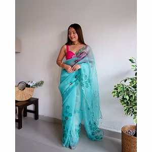 Introducing Organza Magic: the fabric that will leave you spellbound with its exquisite beauty! This luxurious fabric boasts a unique combination of sequin aari work, cut work, and digital printing that is sure to make heads turn. Crafted with utmost precision, Organza Magic is a true masterpiece. The intricate sequin aari work is hand-sewn by skilled artisans, adding a touch of elegance and sophistication to the fabric. The cut work further enhances the beauty of the fabric, creating a stunning interplay of light and shadow. But that's not all. The digital printing on Organza Magic is simply breathtaking. The vivid colors and intricate designs are sure to leave you mesmerized. Plus, the high-quality printing ensures that the colors won't fade, making Organza Magic a durable and long-lasting fabric. Organza Magic is perfect for creating a wide range of clothing and accessories. Its lightweight and airy texture make it ideal for dresses, tops, and skirts that are perfect for any occasion. Its unique combination of traditional and modern techniques also make it ideal for creating statement pieces that are sure to turn heads. In summary, Organza Magic is a truly magical fabric that combines traditional and modern techniques to create a stunning masterpiece. Its unique combination of sequin aari work, cut work, and digital printing make it a truly one-of-a-kind fabric that is perfect for anyone looking to make a statement.