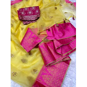 Pure organza saree with contrast pallu and blouse.!