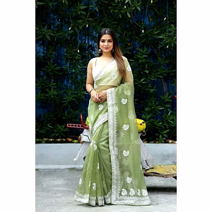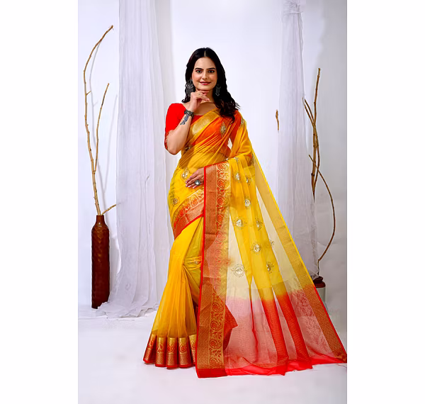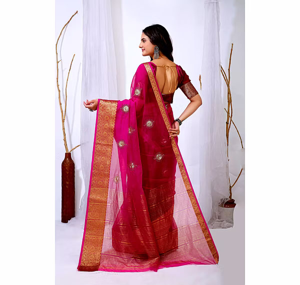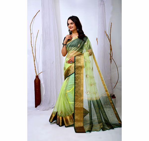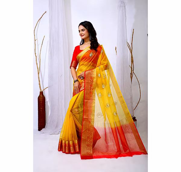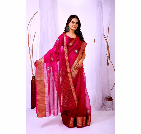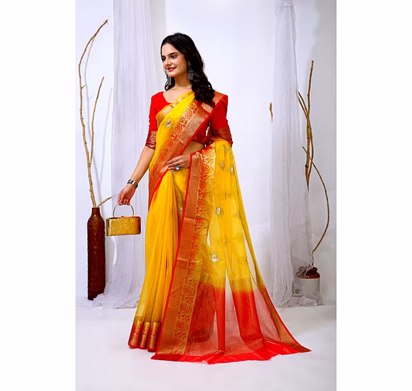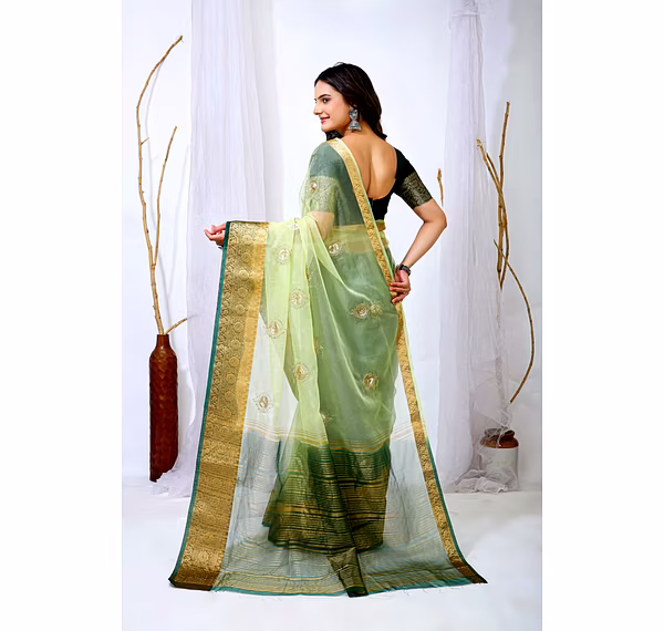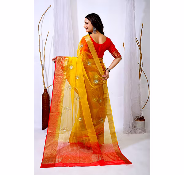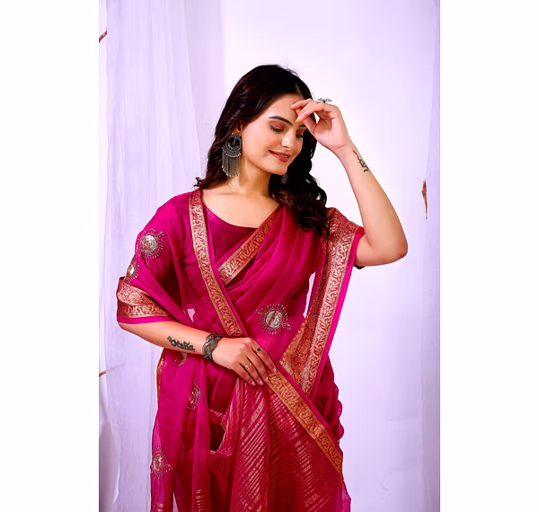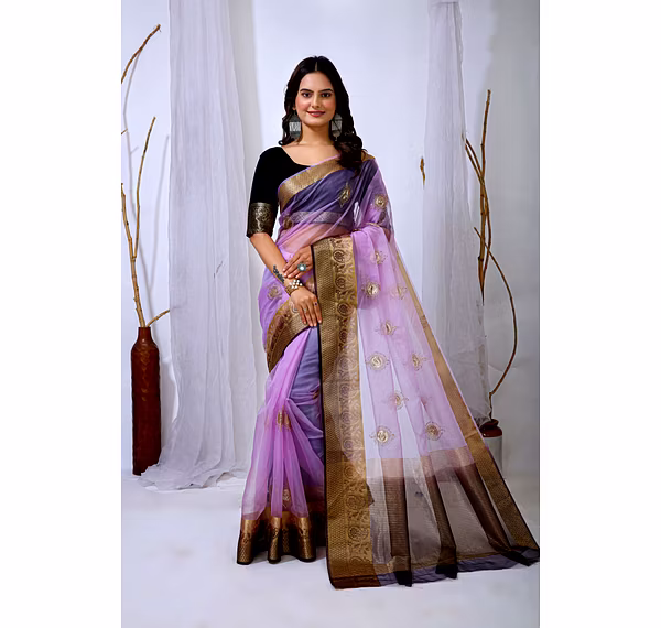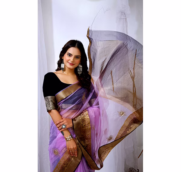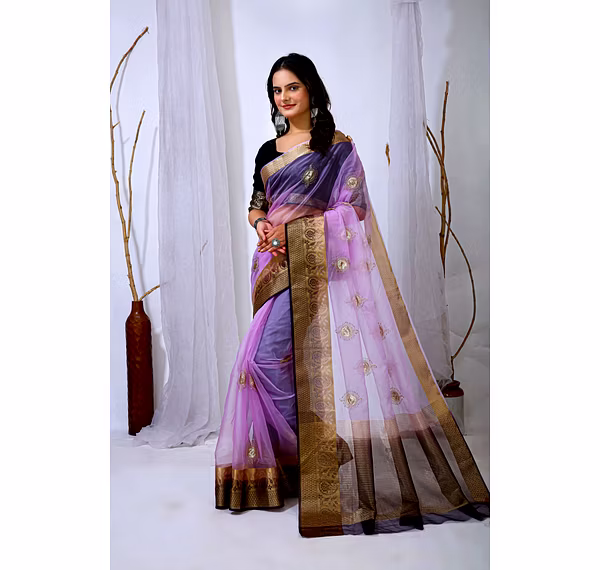 Elevate your ethnic attire with our stunning Organza Saree with Embroidery, a blend of traditional charm and modern elegance. Crafted with premium organza silk fabric, this saree is a perfect choice for special occasions.