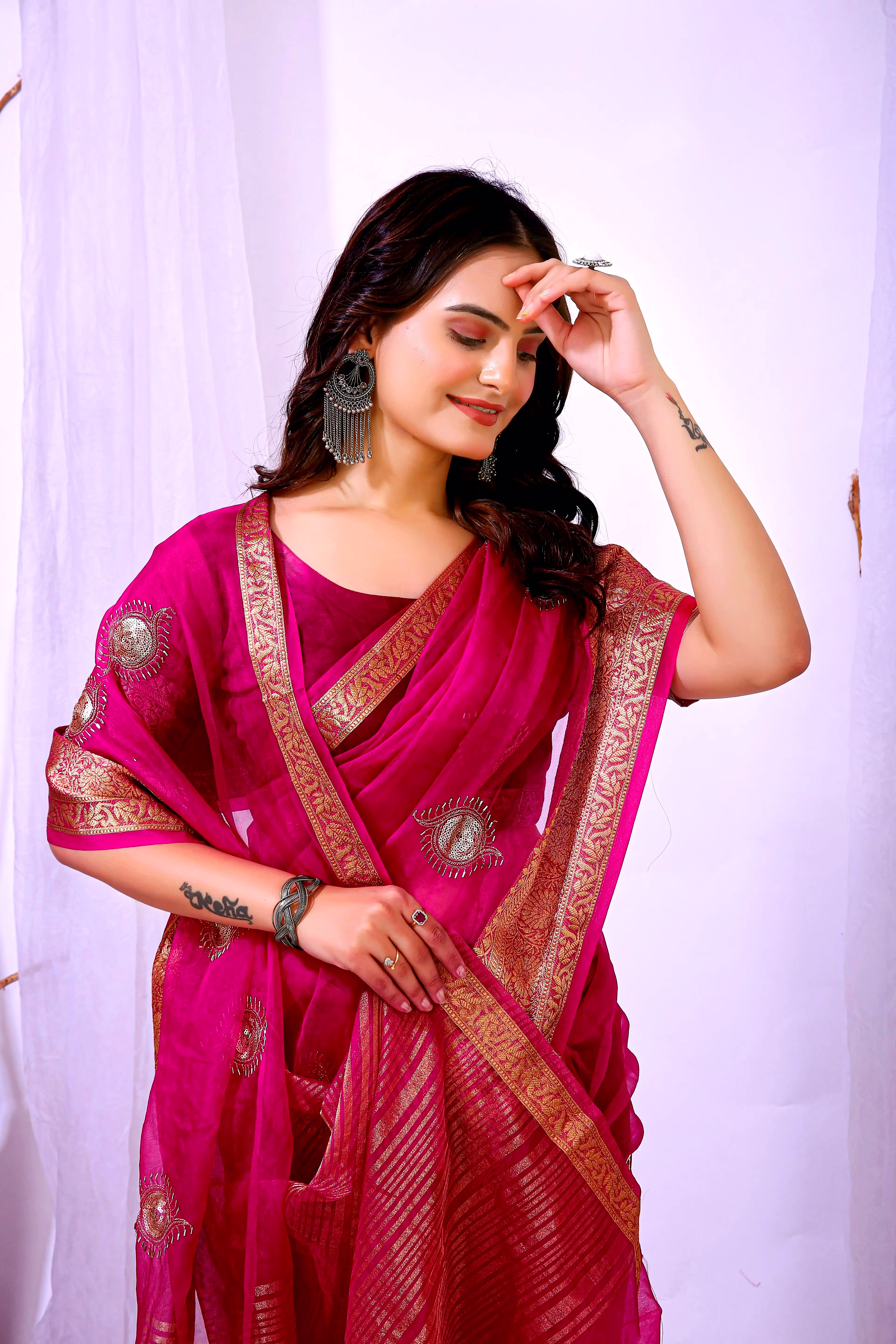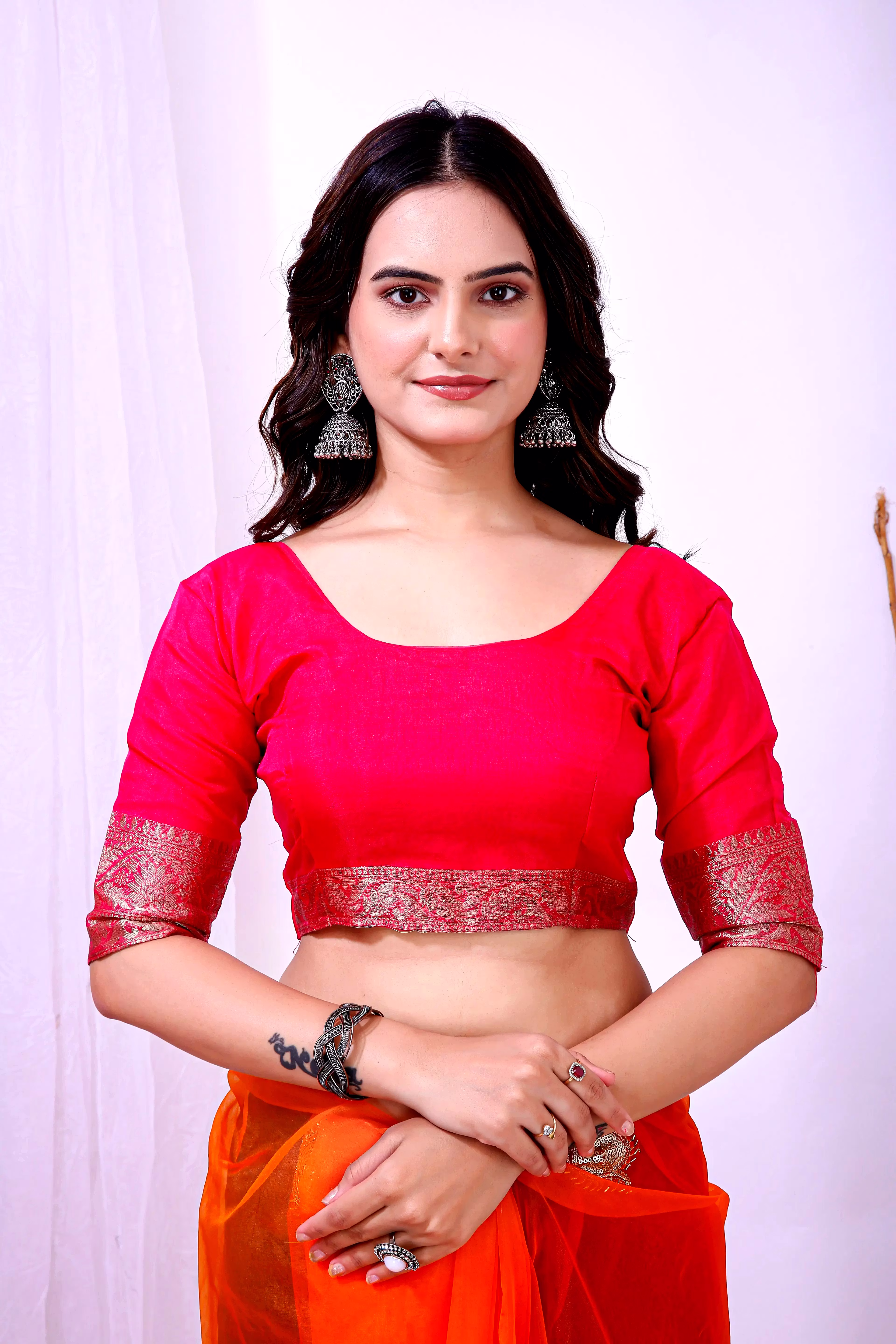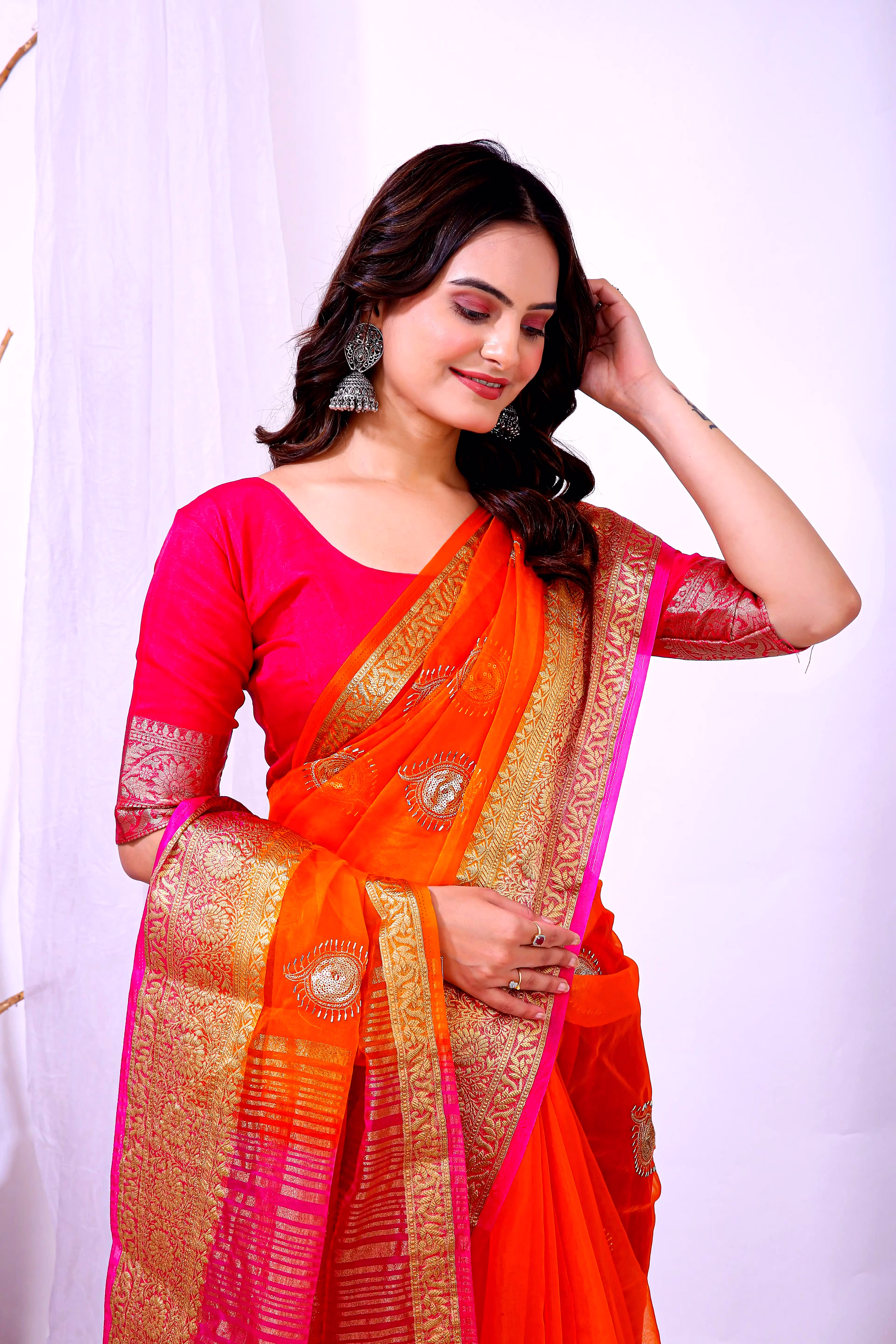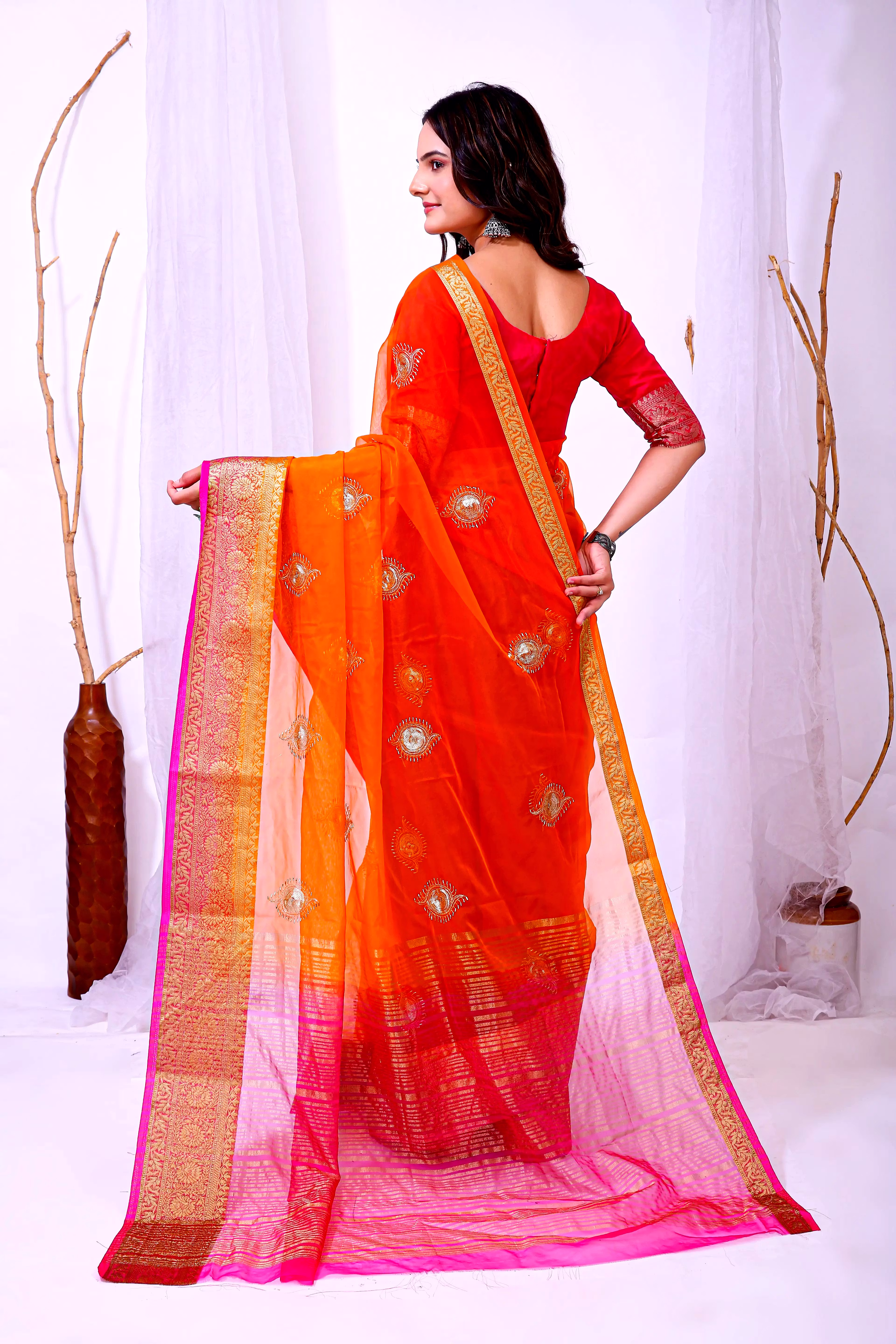 Elevate your ethnic attire with our stunning Organza Saree with Embroidery, a blend of traditional charm and modern elegance. Crafted with premium organza silk fabric, this saree is a perfect choice for special occasions.