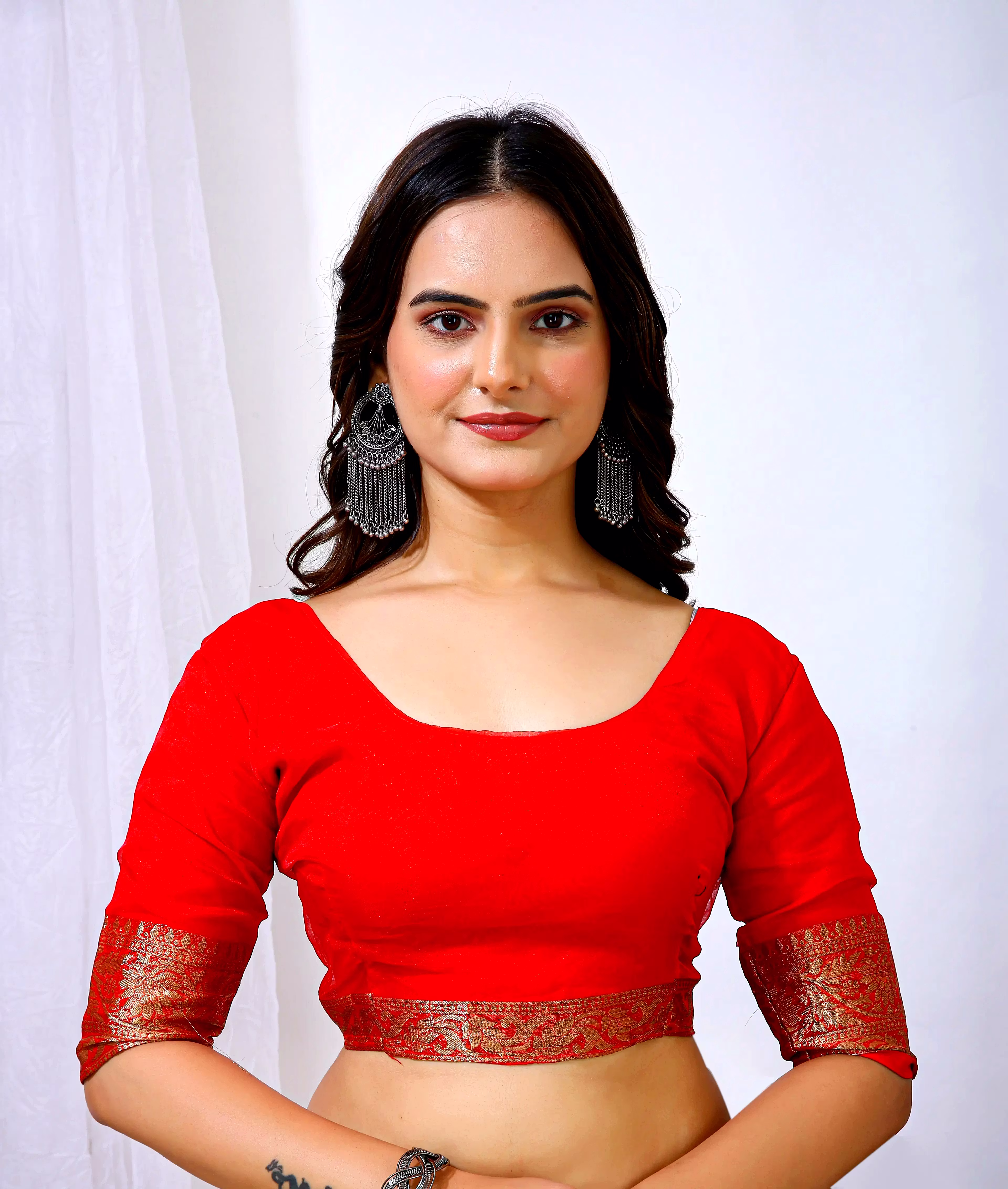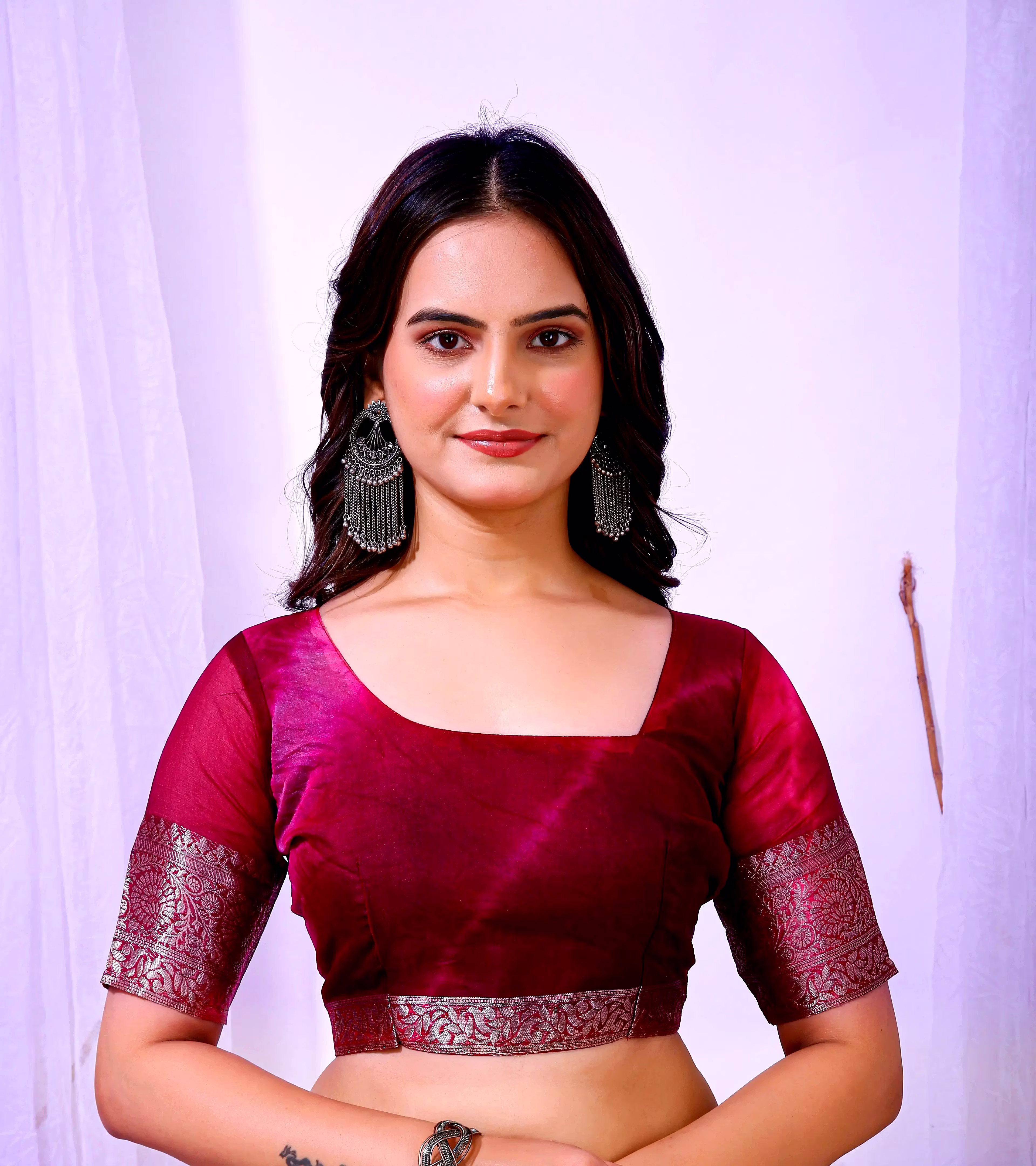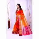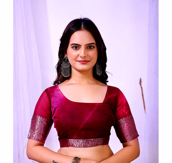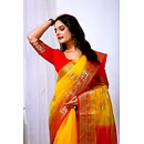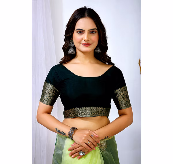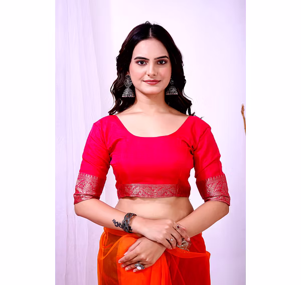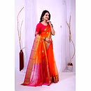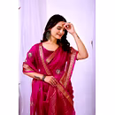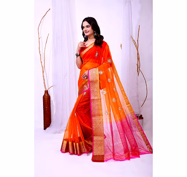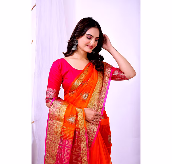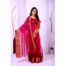 Experience the artistry of traditional banarasi silk with a contemporary twist in our organza silk saree. The delicate embroidery work enhances the overall appeal, making it a timeless piece for your wardrobe.