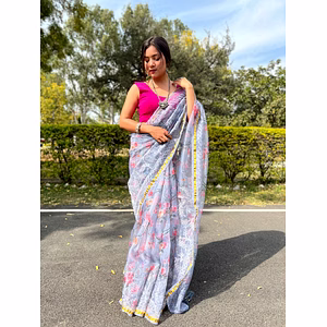 The Organza Sequin-Embroidered Saree with Arco Border is a stunning piece that exudes glamour and sophistication. Crafted from premium quality organza fabric, this saree offers a luxurious and comfortable drape, making it perfect for a wide range of occasions. The saree is intricately embroidered with shimmering sequins, which catch the light beautifully and add a touch of sparkle that is sure to turn heads. The unique selling point of this saree is its arco border, which is a beautifully crafted design element that adds depth and dimension to the overall look of the saree. The border features a series of intricate, interlocking patterns that create a stunning visual effect. The arco border is expertly woven into the saree, ensuring that it sits perfectly along the hemline and complements the overall design. In addition to its stunning design, the Organza Sequin-Embroidered Saree with Arco Border offers a range of benefits. The saree is incredibly versatile, making it suitable for a wide range of occasions, from weddings and formal events to more casual gatherings. The premium quality organza fabric ensures a comfortable and breathable fit, even in warmer weather. The sequin embroidery adds an element of glamour and sophistication, making this saree the perfect choice for those who want to make a statement. Overall, the Organza Sequin-Embroidered Saree with Arco Border is a piece that is sure to impress. With its intricate design, premium quality materials, and versatile nature, this saree is the perfect choice for anyone who wants to look and feel their best.