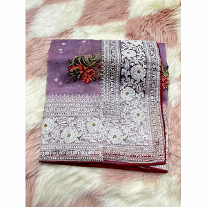 Indulge in the luxurious experience of the Organza Silk Saree, a masterpiece of exquisite craftsmanship. This saree is designed for the modern woman who appreciates the timeless elegance of traditional Indian wear. Crafted from premium-quality organza silk, this saree boasts a lustrous texture and a soft drape that gracefully hugs your curves. The delicate viscose threadwork intricately adorns the body of the saree, adding a touch of opulence to your look. The saree is finished with a stunning chikankari border that exudes sophistication and refinement. Whether you’re attending a formal event or a casual gathering, this saree is sure to make you stand out from the crowd. It is perfect for weddings, parties, and festive occasions, as well as a great addition to your everyday wardrobe. The Organza Silk Saree is not only aesthetically pleasing but also comfortable to wear. It is lightweight and breathable, making it easy to carry throughout the day. The saree is easy to drape and requires minimal maintenance, making it a hassle-free addition to your wardrobe. Invest in the Organza Silk Saree today and experience the timeless beauty of traditional Indian wear. This saree is a one-of-a-kind piece that is sure to be the envy of all your friends. Order now and add a touch of luxury to your wardrobe!