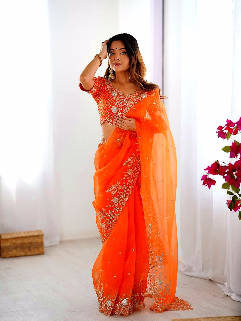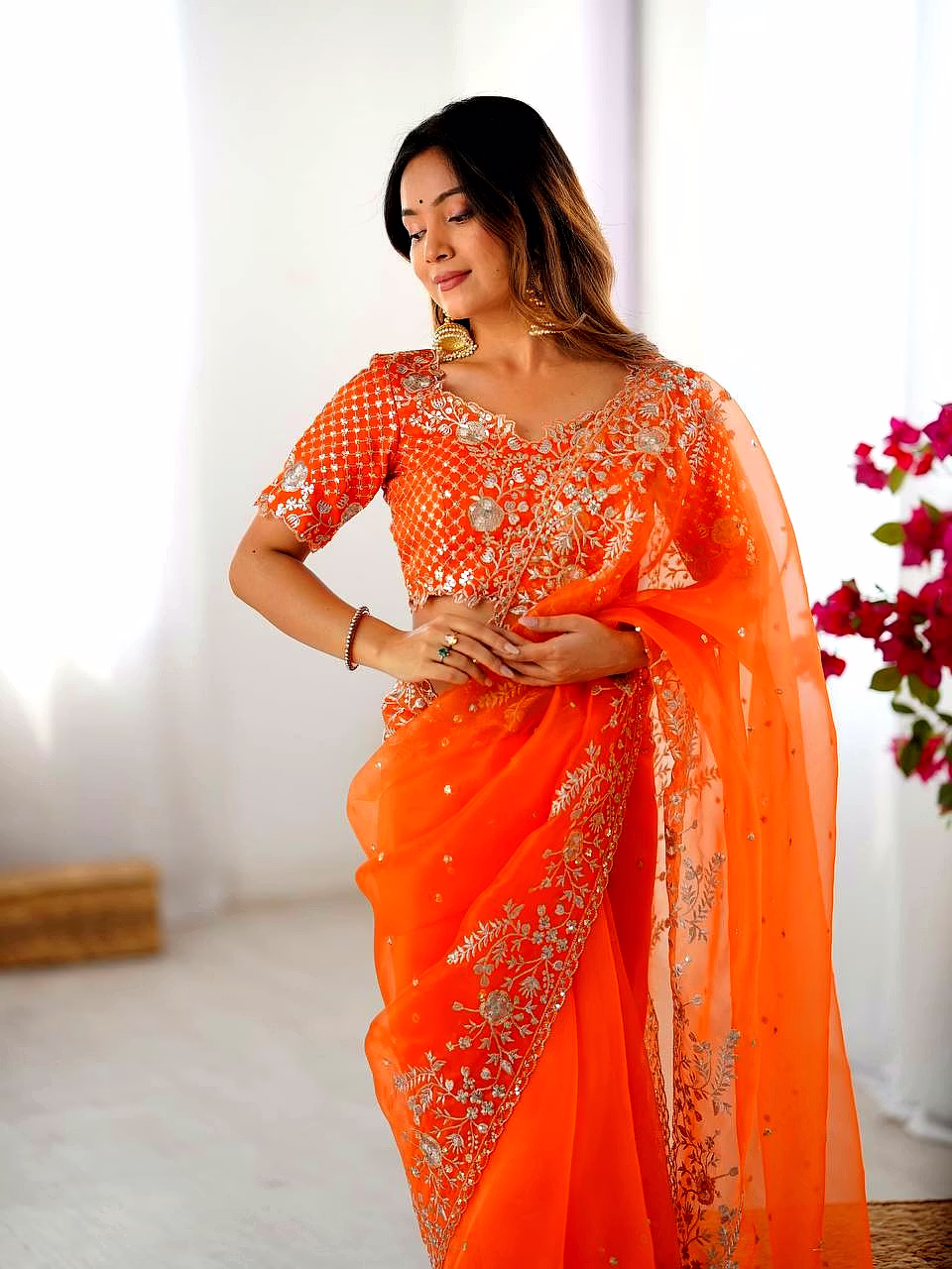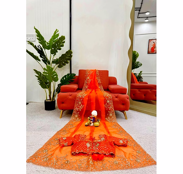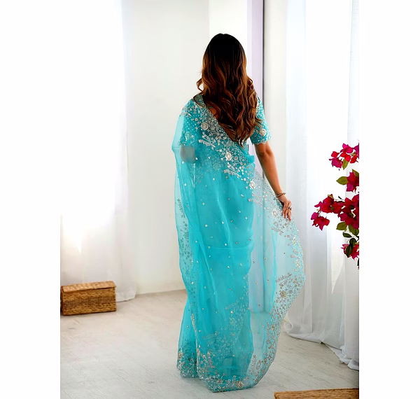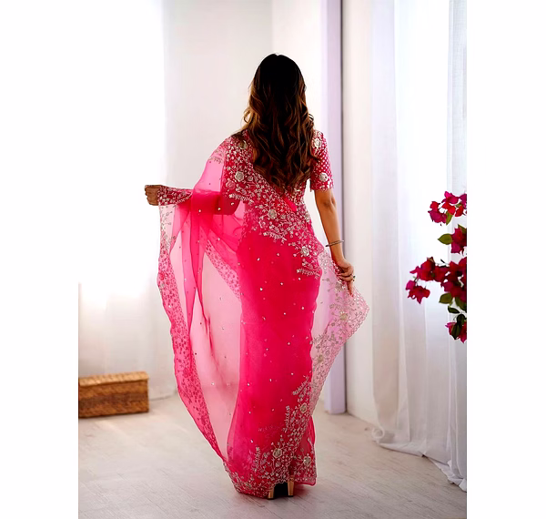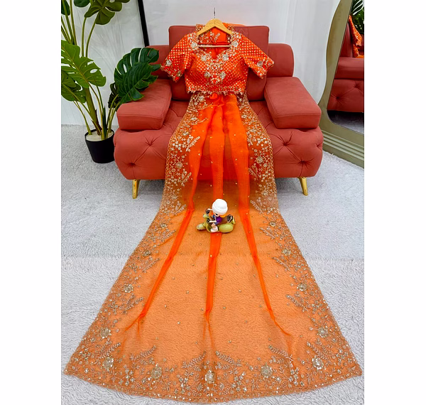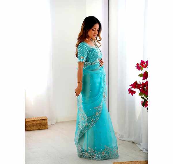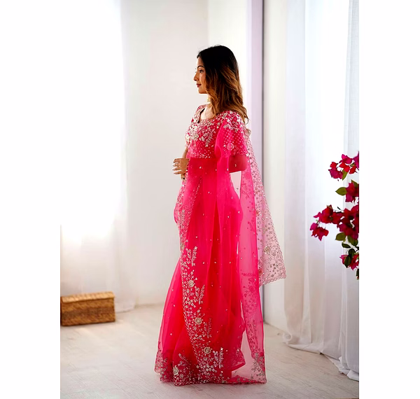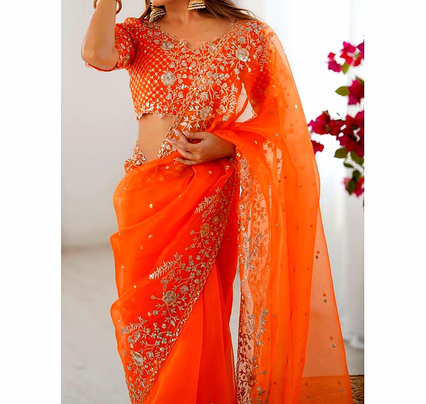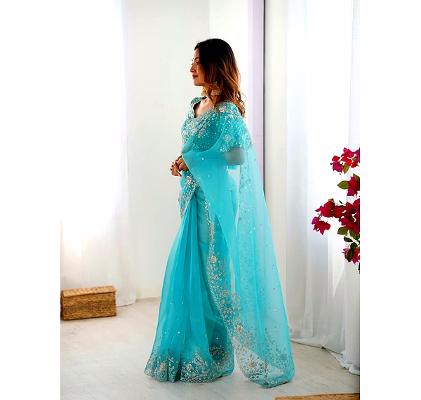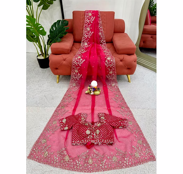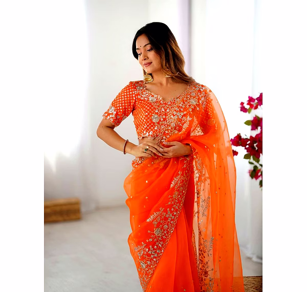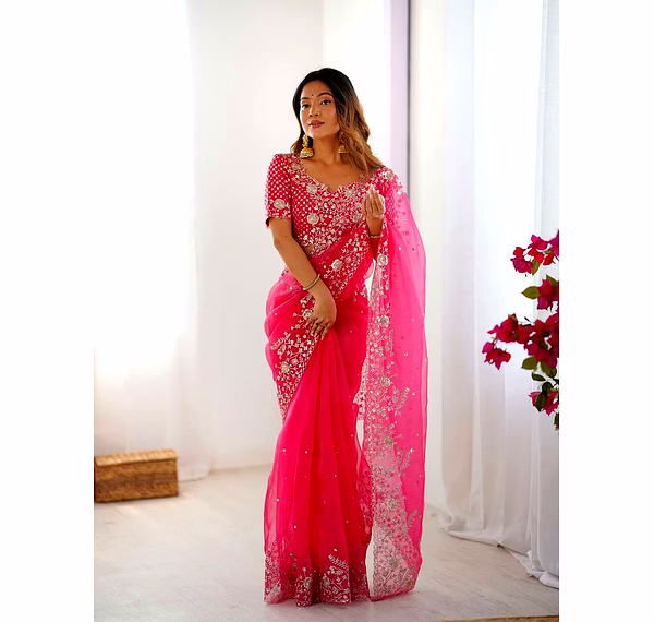 Elevate your ethnic wardrobe with this ethereal Organza Silk Saree, specifically curated for the modern Indian woman. Combining lightweight comfort with a royal sheen, it’s the perfect ensemble to make heads turn at every wedding or high-end party.