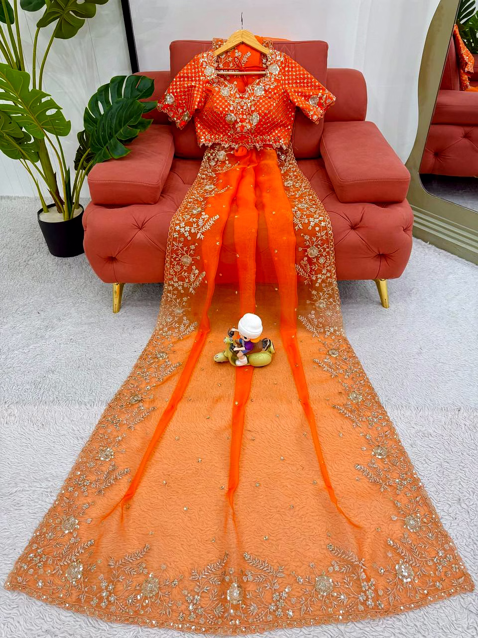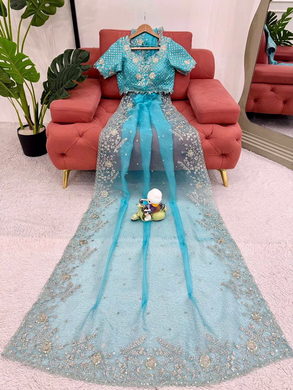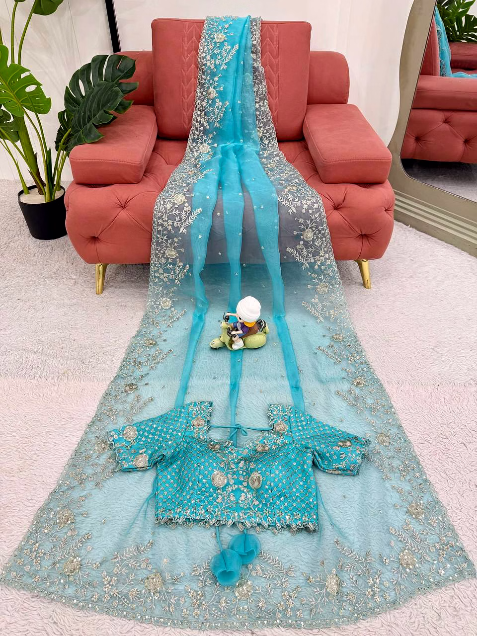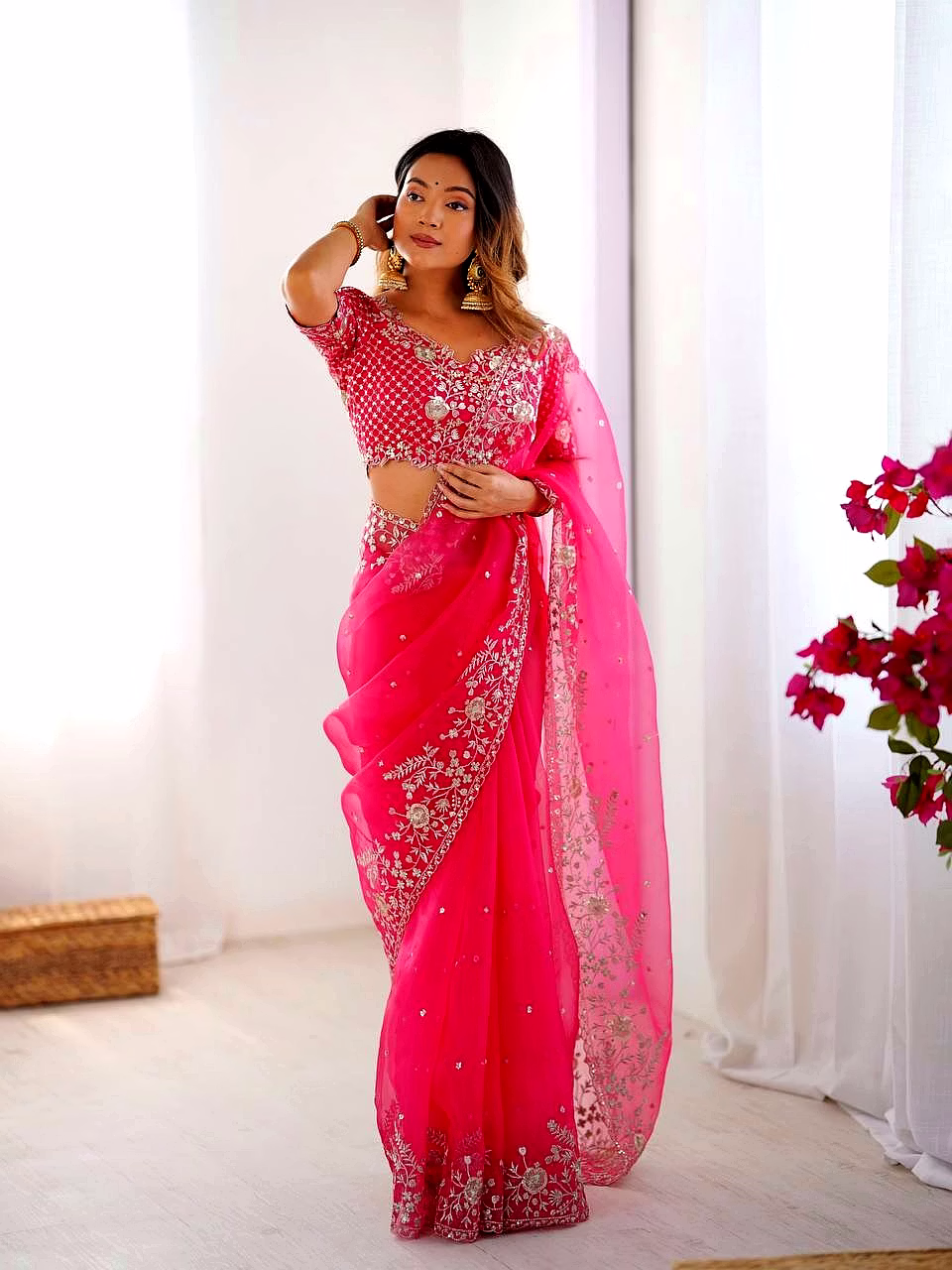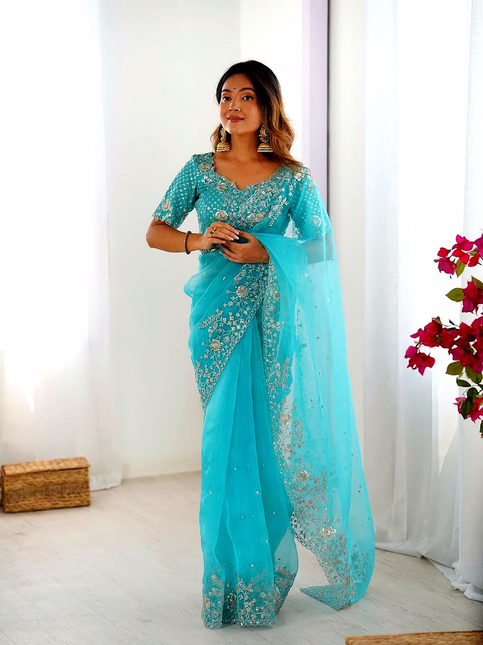 Elevate your ethnic wardrobe with this ethereal Organza Silk Saree, specifically curated for the modern Indian woman. Combining lightweight comfort with a royal sheen, it’s the perfect ensemble to make heads turn at every wedding or high-end party.