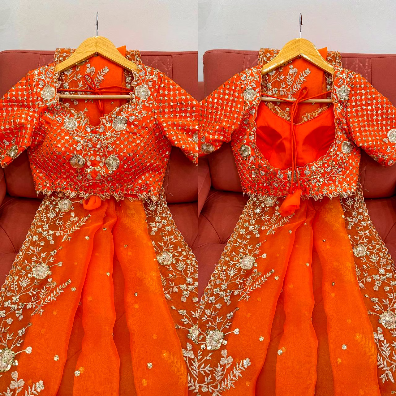 Blouse Fabric: Matching Organza Silk (0.80 Meters - Unstitched)