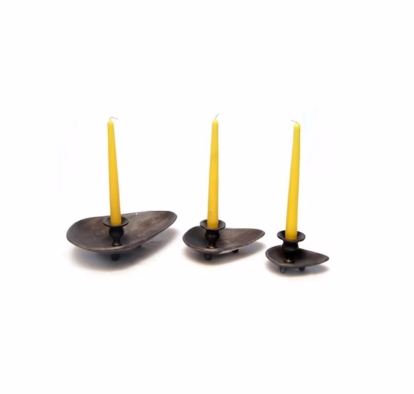 This set of three stylish candle holders features an oval base design, adding a contemporary touch to your candlelight display. You can arrange them in various ways to create a unique and eye-catching centerpiece for your space.