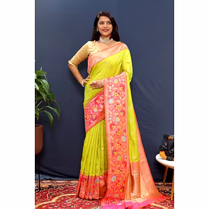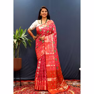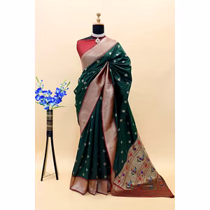 Introducing the exquisite Paithani Pure Silk Handloom Saree with Pure Jari! This extraordinary saree combines the elegance of pure soft silk with the timeless allure of gold jari, offering a truly remarkable piece of art that will elevate your style to new heights. Crafted with utmost precision and care, this saree boasts a length of 5.50 meters, allowing you to drape it with grace and create stunning looks for any occasion. The intricate gold jari work adds a touch of opulence, making you the center of attention wherever you go. Experience the luxurious feel of pure silk against your skin, as it effortlessly glides and drapes, accentuating your natural beauty. The softness and smoothness of the fabric will make you feel like royalty, elevating your confidence and leaving a lasting impression. What sets this saree apart is its rich heritage and traditional craftsmanship. The Paithani weaving technique, passed down through generations, ensures that every piece is a masterpiece. The intricate motifs and patterns are meticulously woven by skilled artisans, who pour their heart and soul into creating a piece that reflects the grandeur of Indian culture. This saree is not just a garment; it is a symbol of elegance, tradition, and exclusivity. It is a reflection of your unique personality and individuality. Whether you wear it for a wedding, a festival, or any special occasion, this saree will make you feel like a true queen. Indulge in the timeless beauty of the Paithani Pure Silk Handloom Saree with Pure Jari and embrace the allure of tradition and luxury. Make a statement with every step you take, and let the world witness your impeccable taste and style. It's time to shine with the unmatched beauty of this exceptional saree.