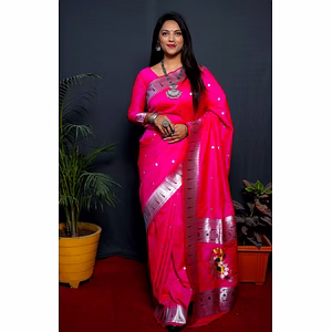 Paithani Silk Saree with Meenakari Pallu With Blouse Piecs