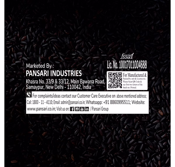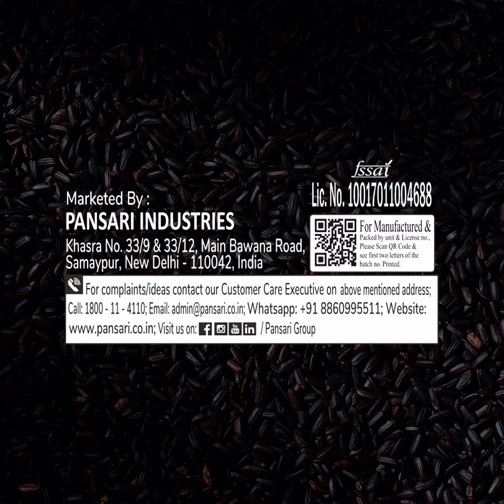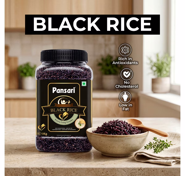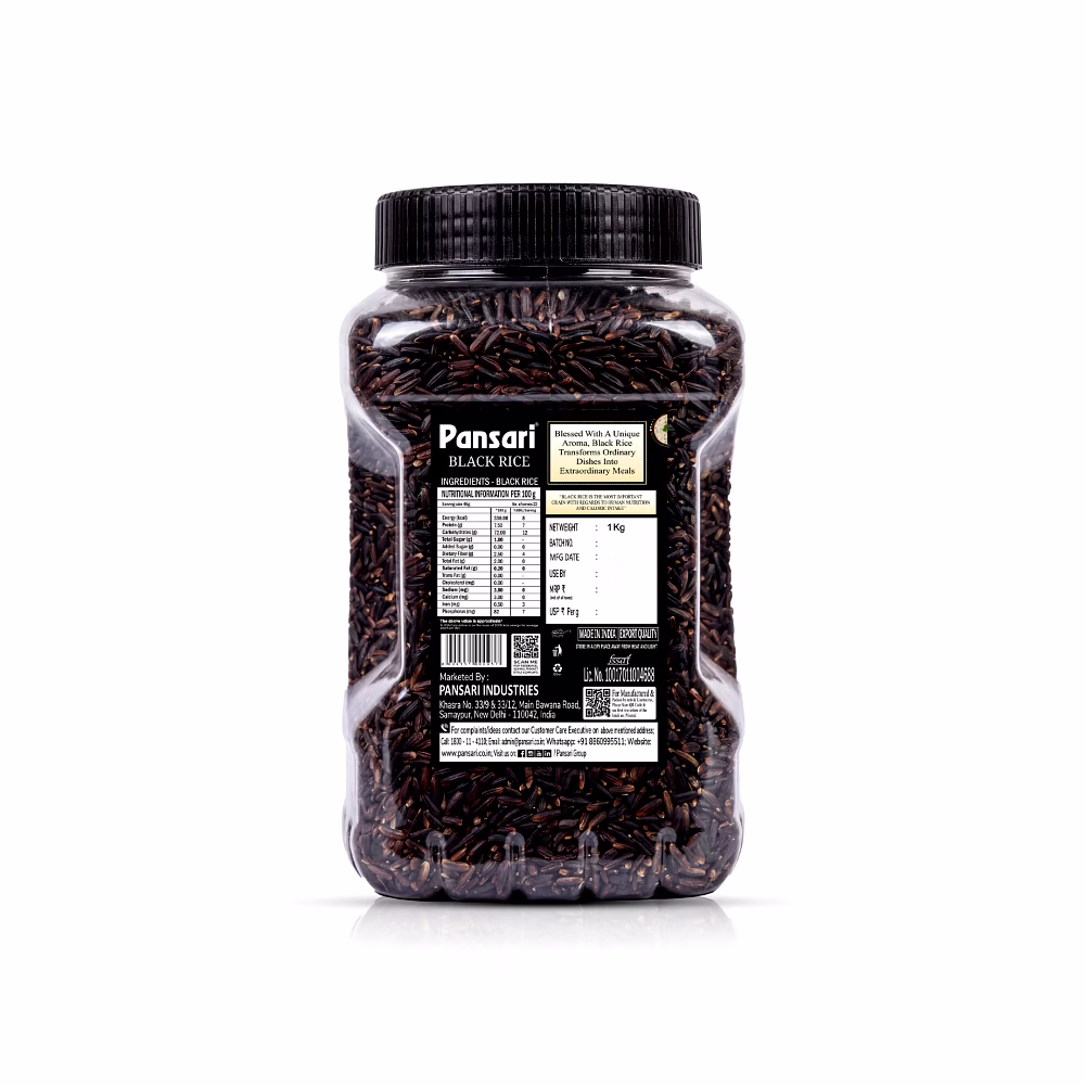 Pansari Black Rice 1KG is a whole grain rice variety known for its distinct dark appearance and firm texture. It can be used in a wide range of recipes, including rice bowls, side dishes, and regional preparations.