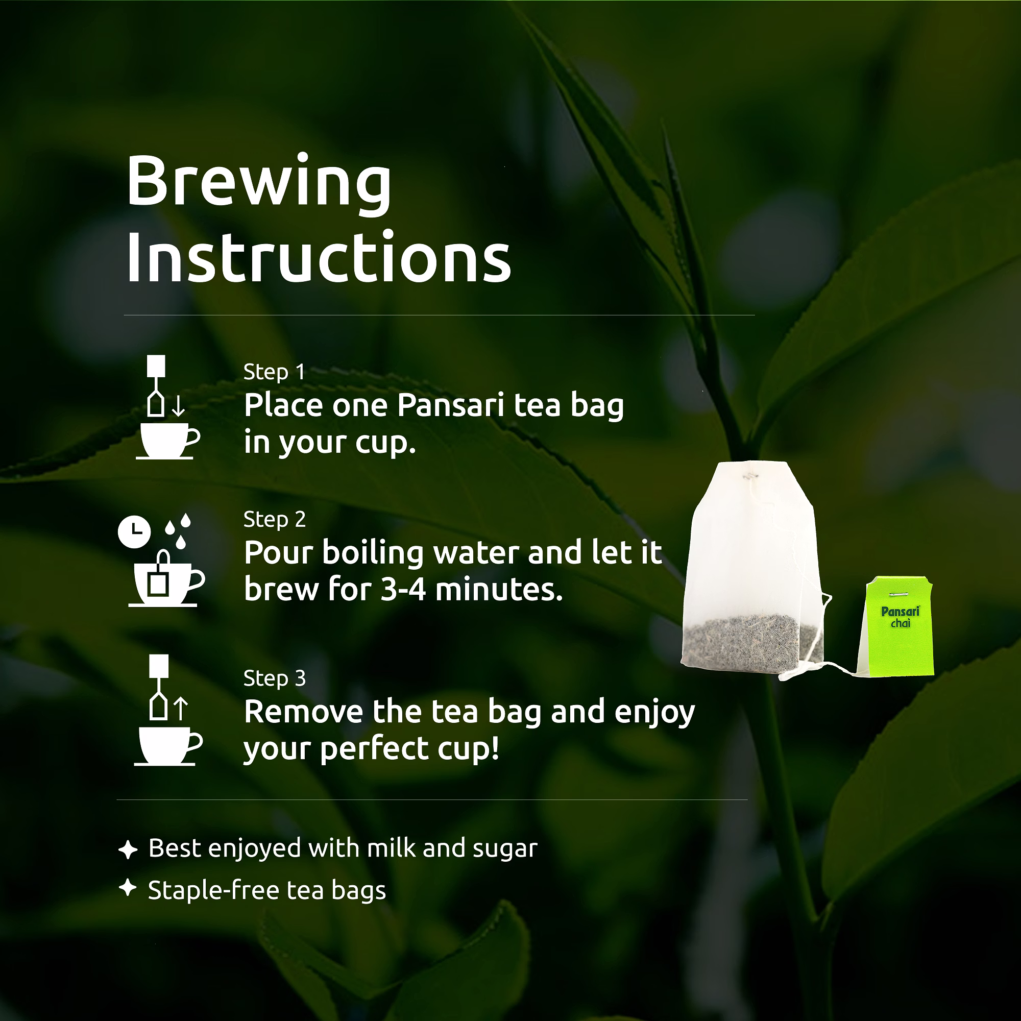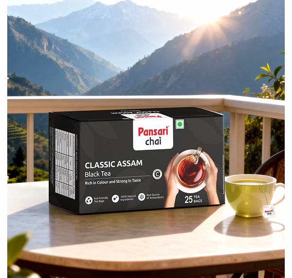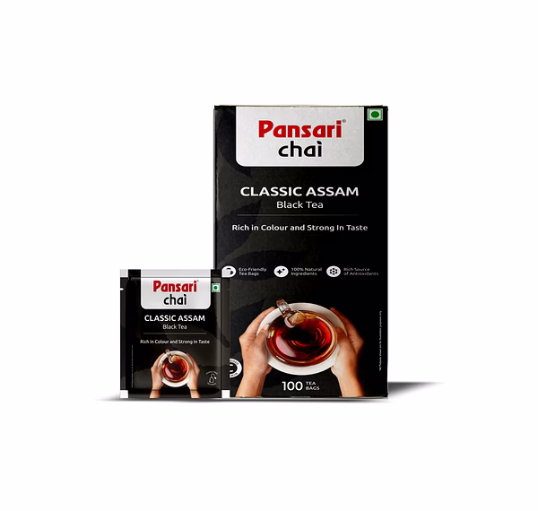 Pansari Classic Assam Tea – 100 Tea Bags is a premium Assam black tea known for its strong, bold flavor and rich color.