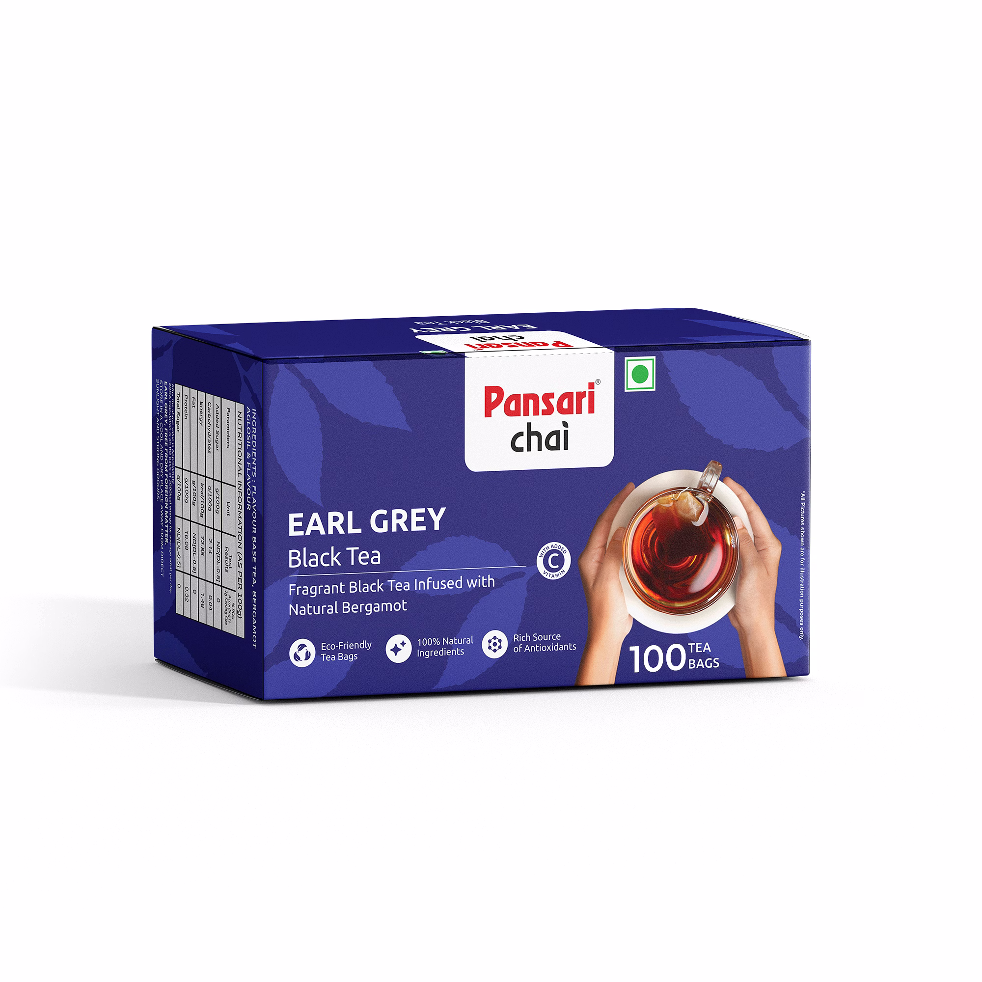 Pansari Earl Grey Tea – 1.8g x 100 Tea Bags is a premium black tea infused with bergamot flavour, known for its distinctive citrusy aroma and smooth taste.
