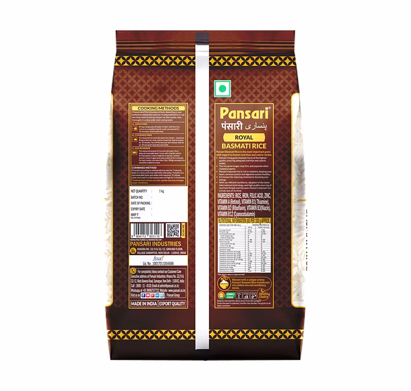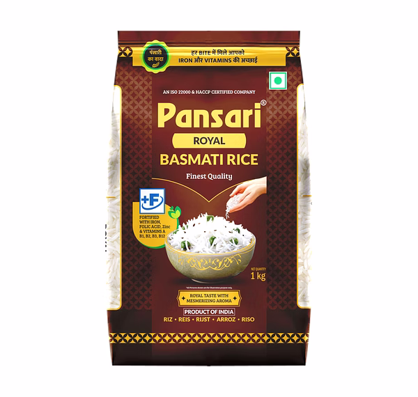 Pansari Royal Basmati Rice 5kg is a premium-quality extra-long grain basmati rice designed for superior cooking performance and rich taste. The rice is naturally aged to improve its elongation, texture, and aroma, making it a preferred choice for traditional dishes like biryani and pulao.